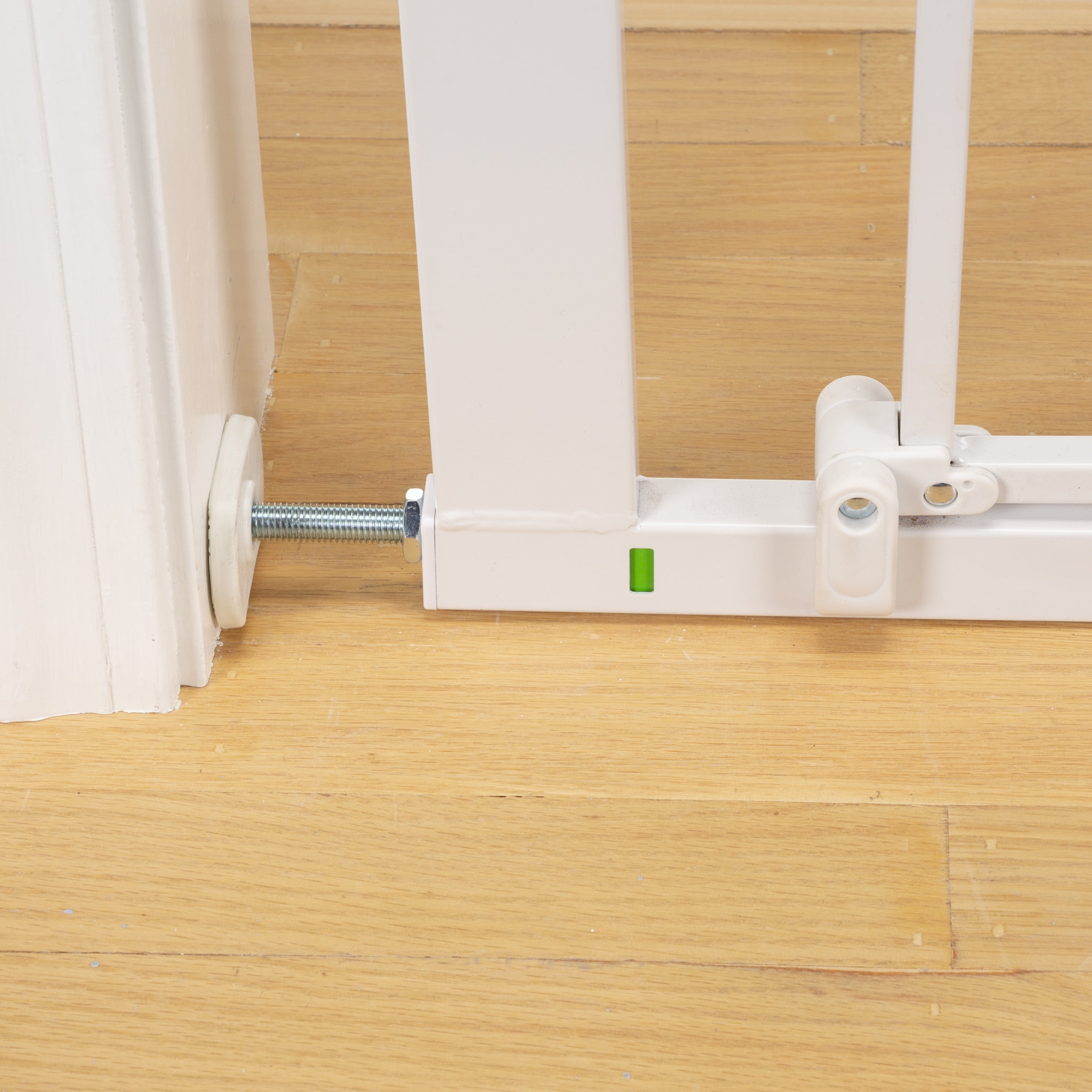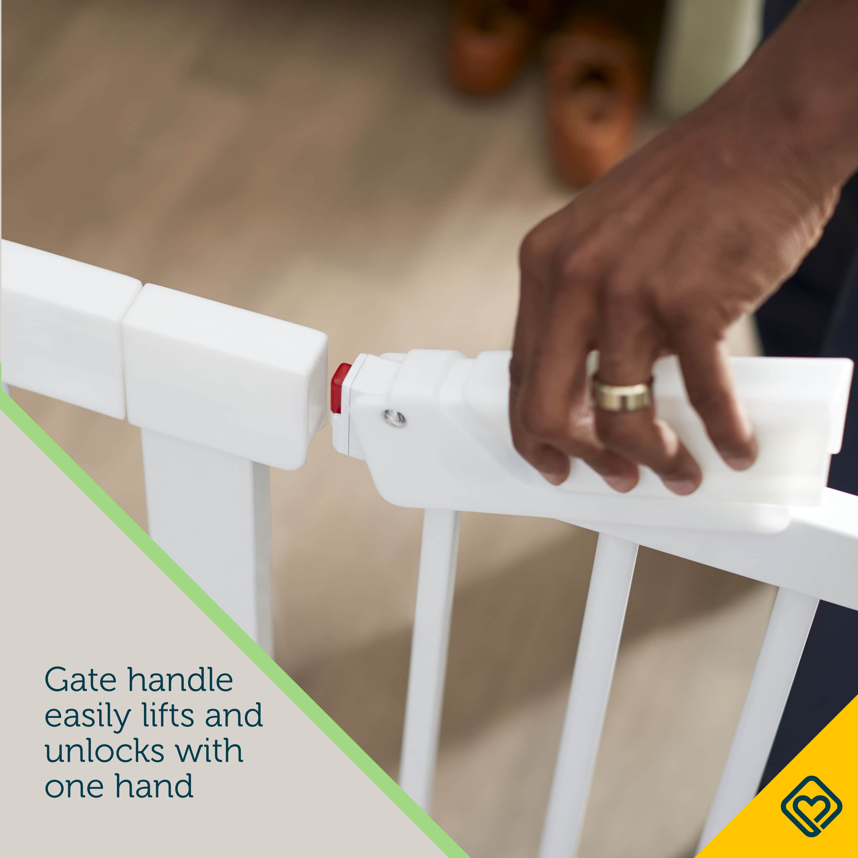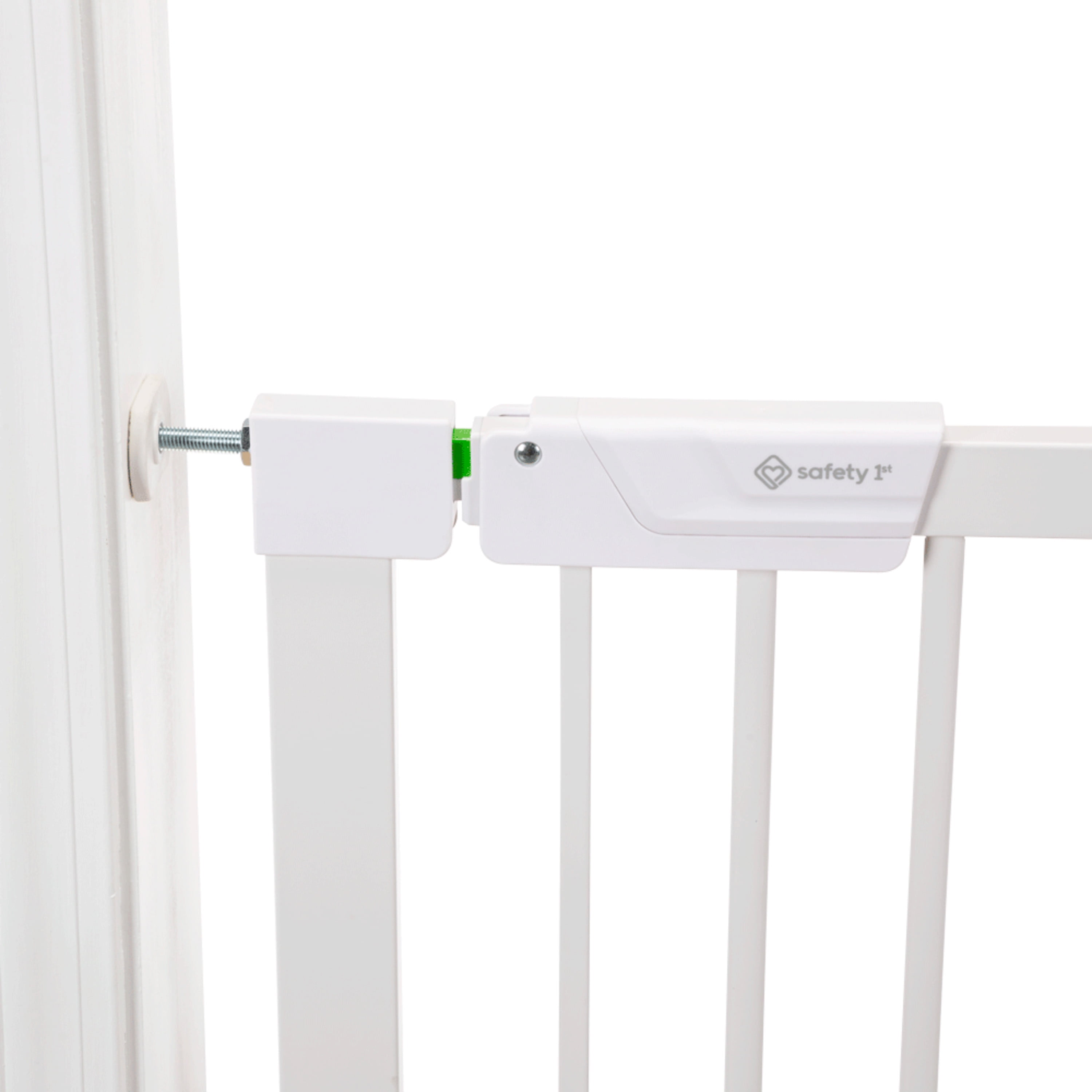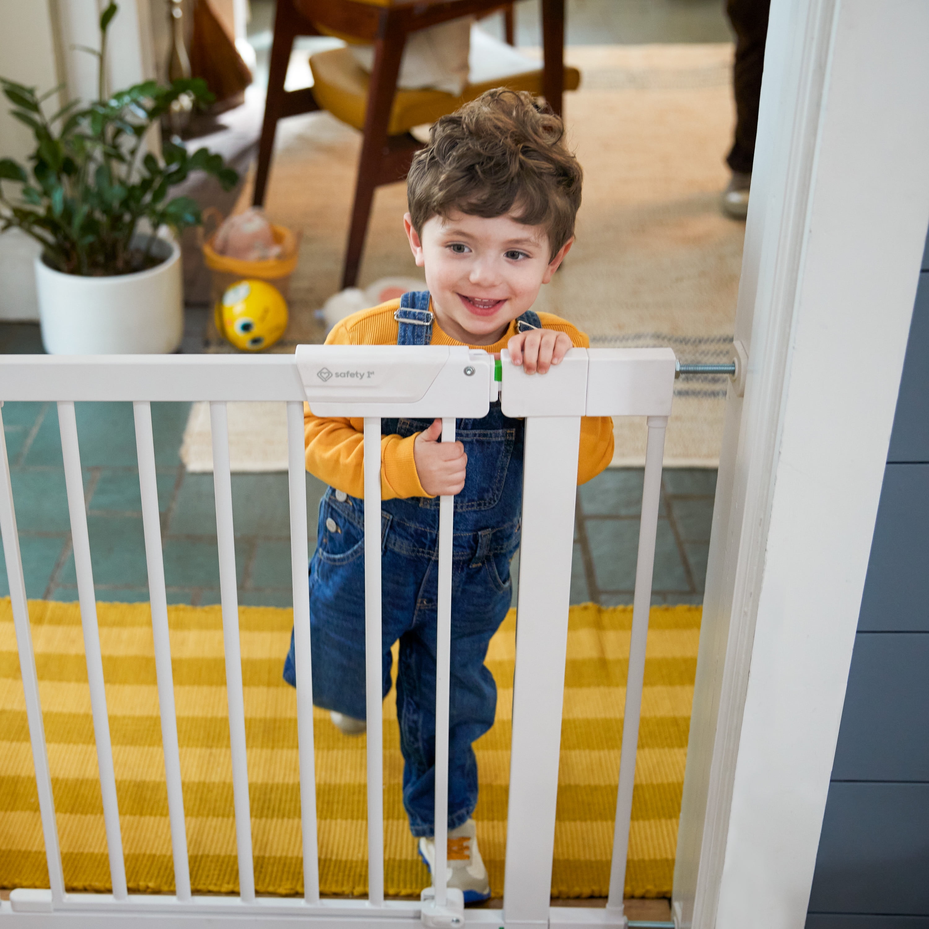 Safety 1st Pressure-Check Gate with SecureTech, White Visual red-to-green SecureTech™ indicators let you know if the gate is correctly latched and properly pressurized The innovative design eliminates the need for added hardware or drilling into the wall. Gate handle easily lifts and unlocks with one hand Fits most doorways and works between rooms or at the bottom of the stairs TO PREVENT FALLS, NEVER use pressure-installed gates at the top of stairs 28″ high and 29″–38″ wide JPMA certified and meets CPSC requirements Perfect for children 6–24 months and great for pets, too