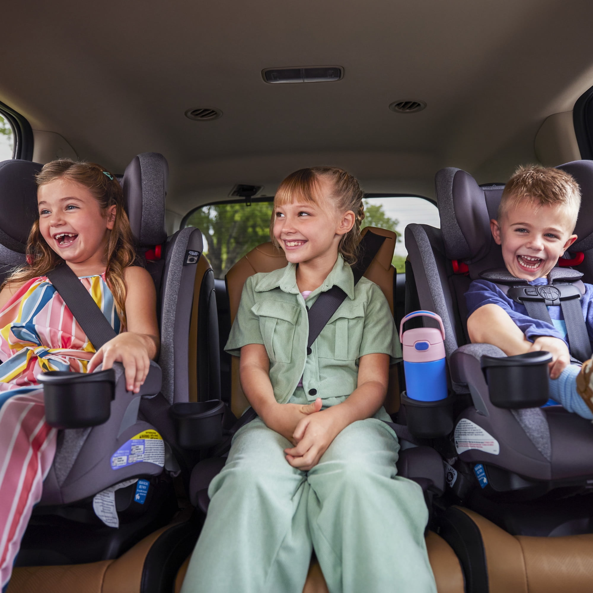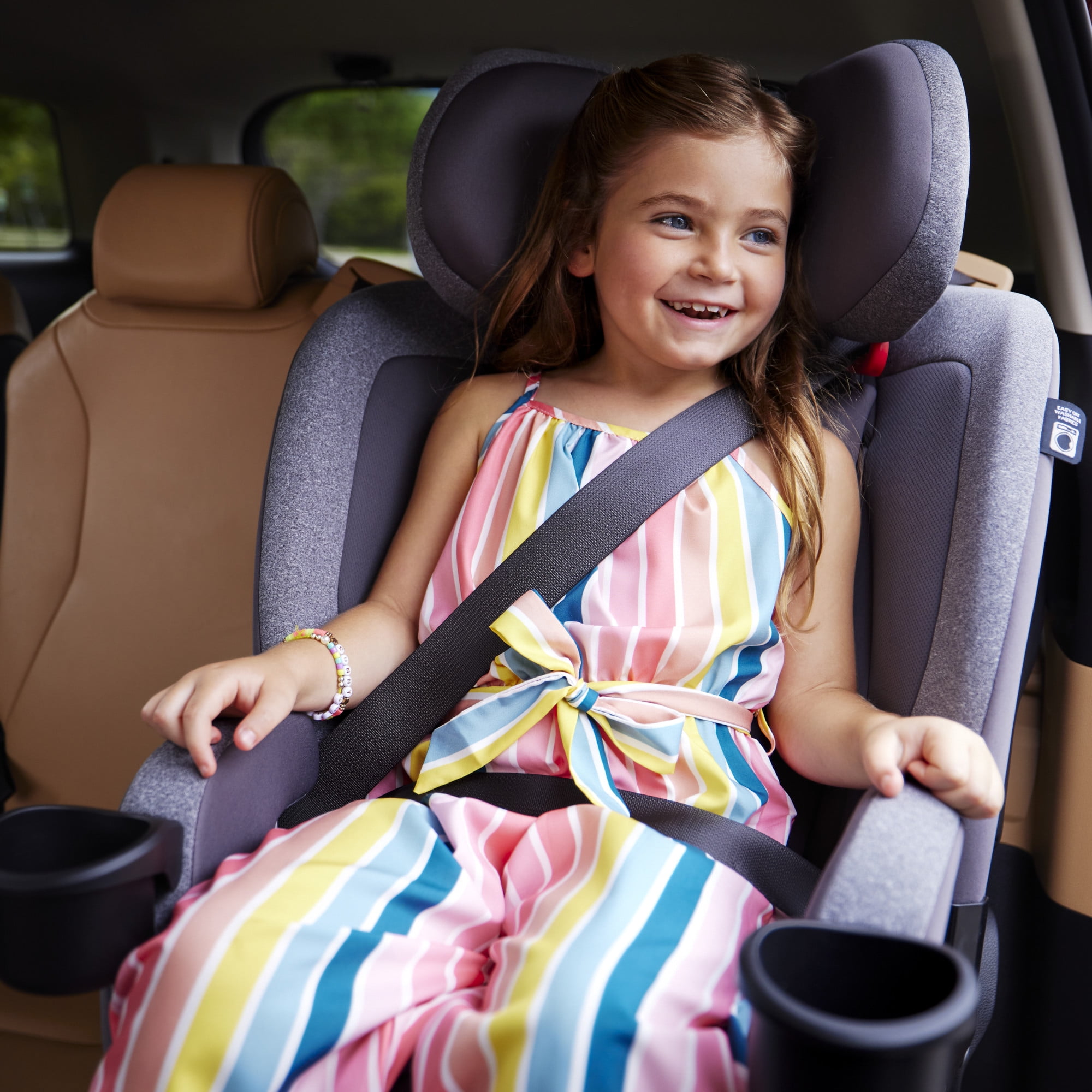 4 modes of use: rear-facing (5–40 lbs., 19”–40”), forward-facing (30–65 lbs., 34.4”–49”), belt-positioning booster and backless booster (40–100 lbs., 43.4”–52”). Fit 3 car seats across in standard back seats with the slim design Converts to backless booster with just one hand Base features 5-position recline Machine-washable and dryer-safe seat pad and infant inserts Engineered and tested to meet or exceed federal safety standards Meets federal Side Impact standard 10-position headrest and harness adjust without rethreading 2 removable and dishwasher-safe cup holders Actual fit may vary. Not all children will comfortably fit in the seat for the full weight and height ranges listed. Carton Quantity: 1 Each