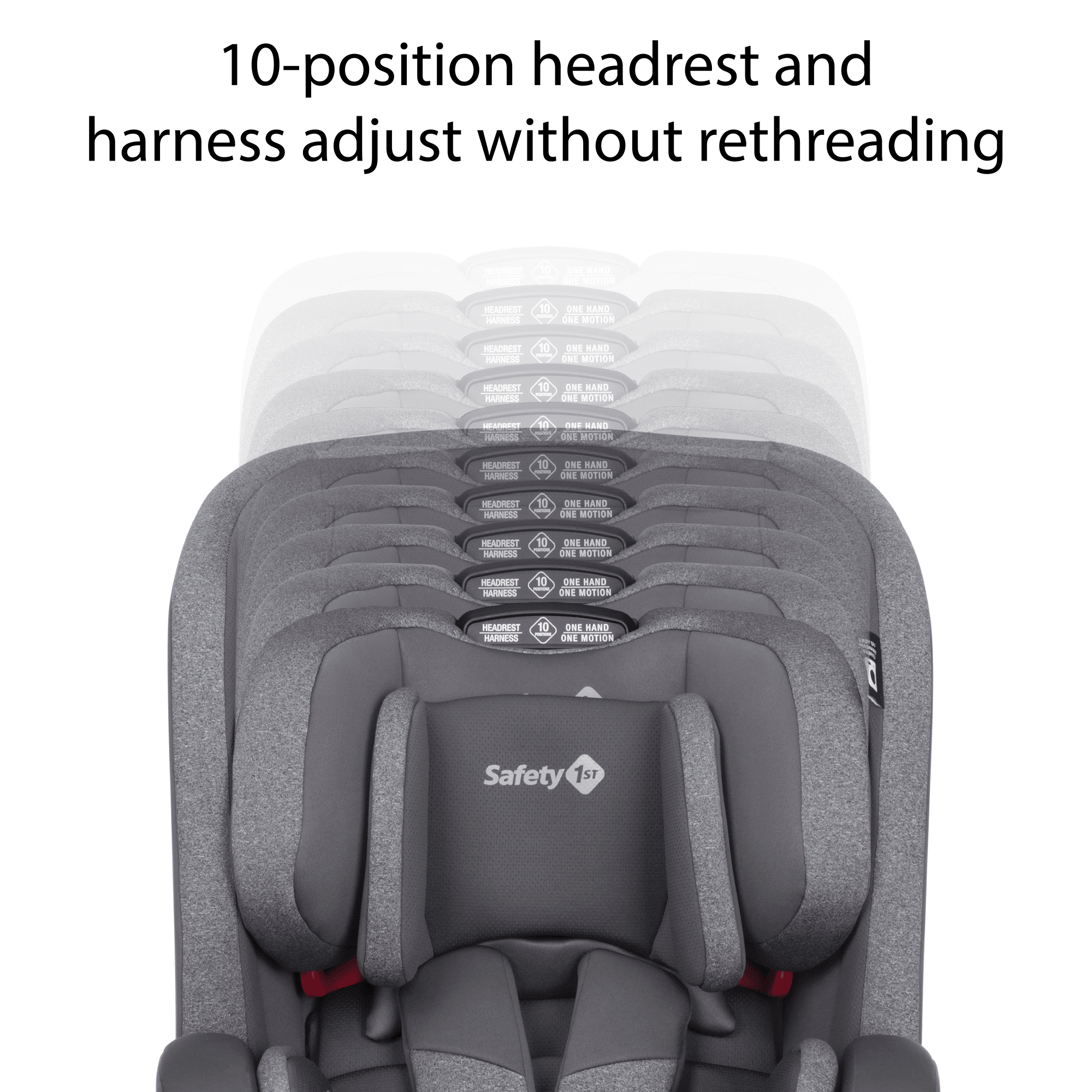 4 modes of use: rear-facing (5–40 lbs., 19”–40”), forward-facing (30–65 lbs., 34.4”–49”), belt-positioning booster and backless booster (40–100 lbs., 43”–52”) Fit 3 car seats across in standard back seats Converts to backless booster with just one hand Base features 5-position recline Machine-washable and dryer-safe seat pad and infant inserts Meets or exceeds federal safety standards 2 removable and dishwasher-safe cup holders 10-position headrest and harness adjust without rethreading