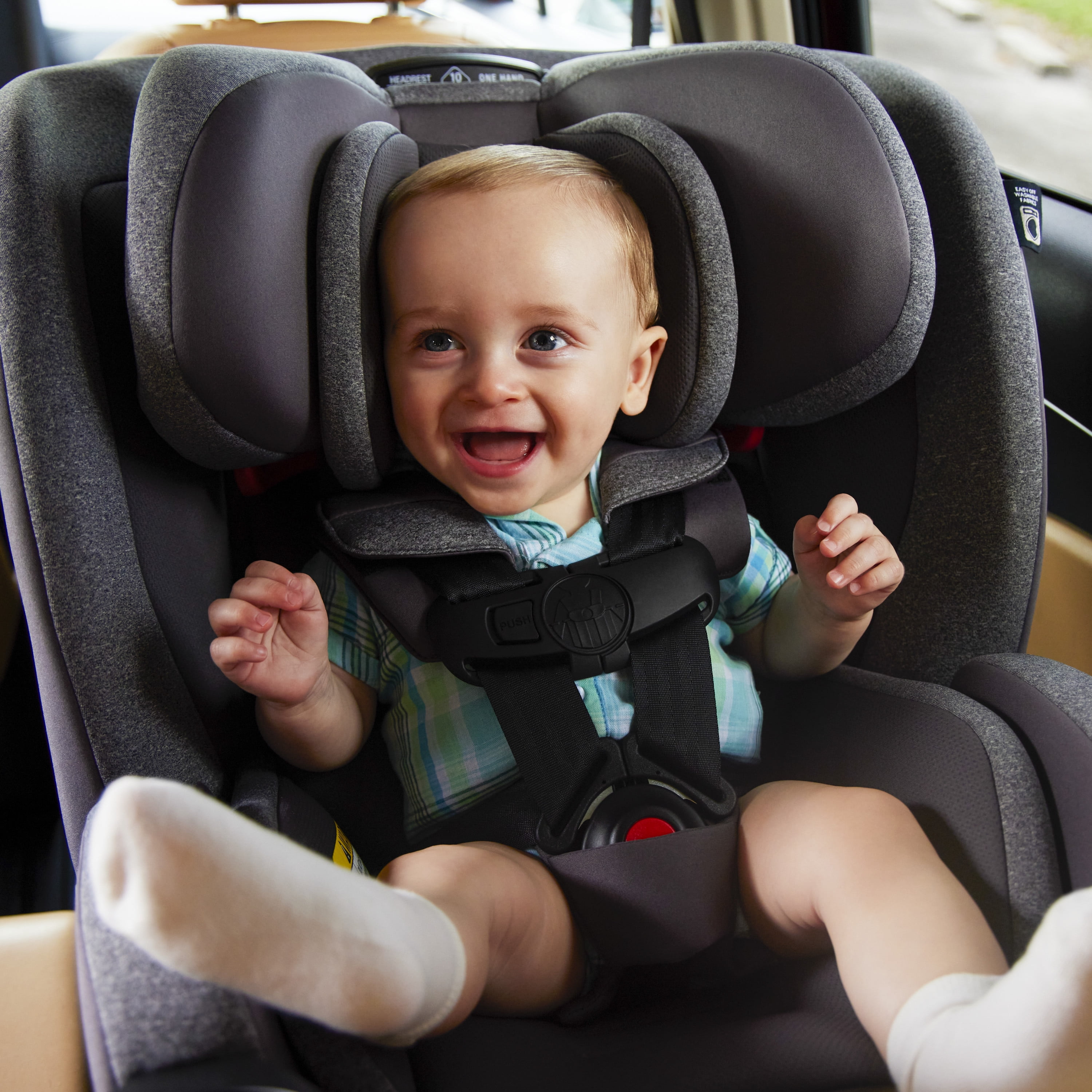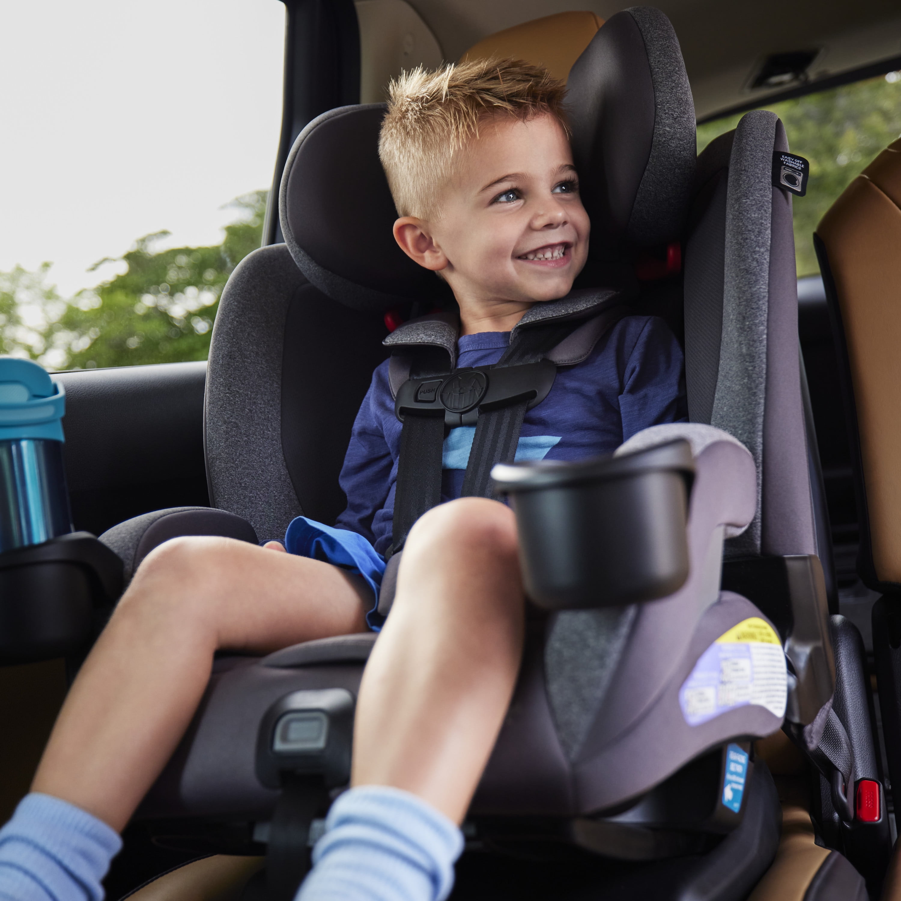 4 modes of use: rear-facing (5–40 lbs., 19”–40”), forward-facing (30–65 lbs., 34.4”–49”), belt-positioning booster and backless booster (40–100 lbs., 43.4”–52”). Fit 3 car seats across in standard back seats with the slim design Converts to backless booster with just one hand Base features 5-position recline Machine-washable and dryer-safe seat pad and infant inserts Engineered and tested to meet or exceed federal safety standards Meets federal Side Impact standard 10-position headrest and harness adjust without rethreading 2 removable and dishwasher-safe cup holders Actual fit may vary. Not all children will comfortably fit in the seat for the full weight and height ranges listed. Carton Quantity: 1 Each