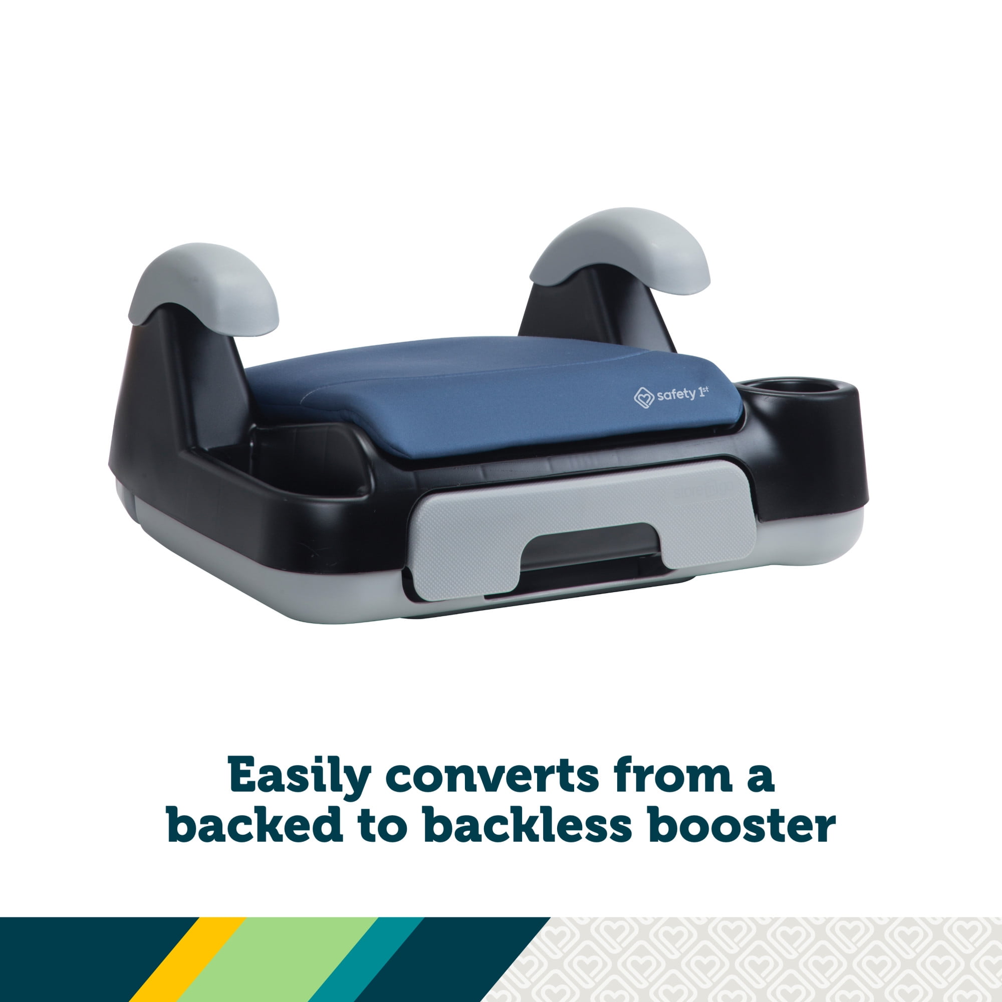 2-in-1 belt-positioning booster car seat grows with your child from 40–100 lbs. (43″–57″) and easily converts from a high back to a backless booster car seat Storage drawer keeps kids’ essentials within reach and the car clutter-free, while they remain buckled in the seat Child-friendly latch keeps drawer shut Built-in cup holder and additional storage on the sides of the seat Adjustable headrest grows with your child Machine-washable seat pad Lightweight and easy to move from car to car Exceeds Federal Safety Standards