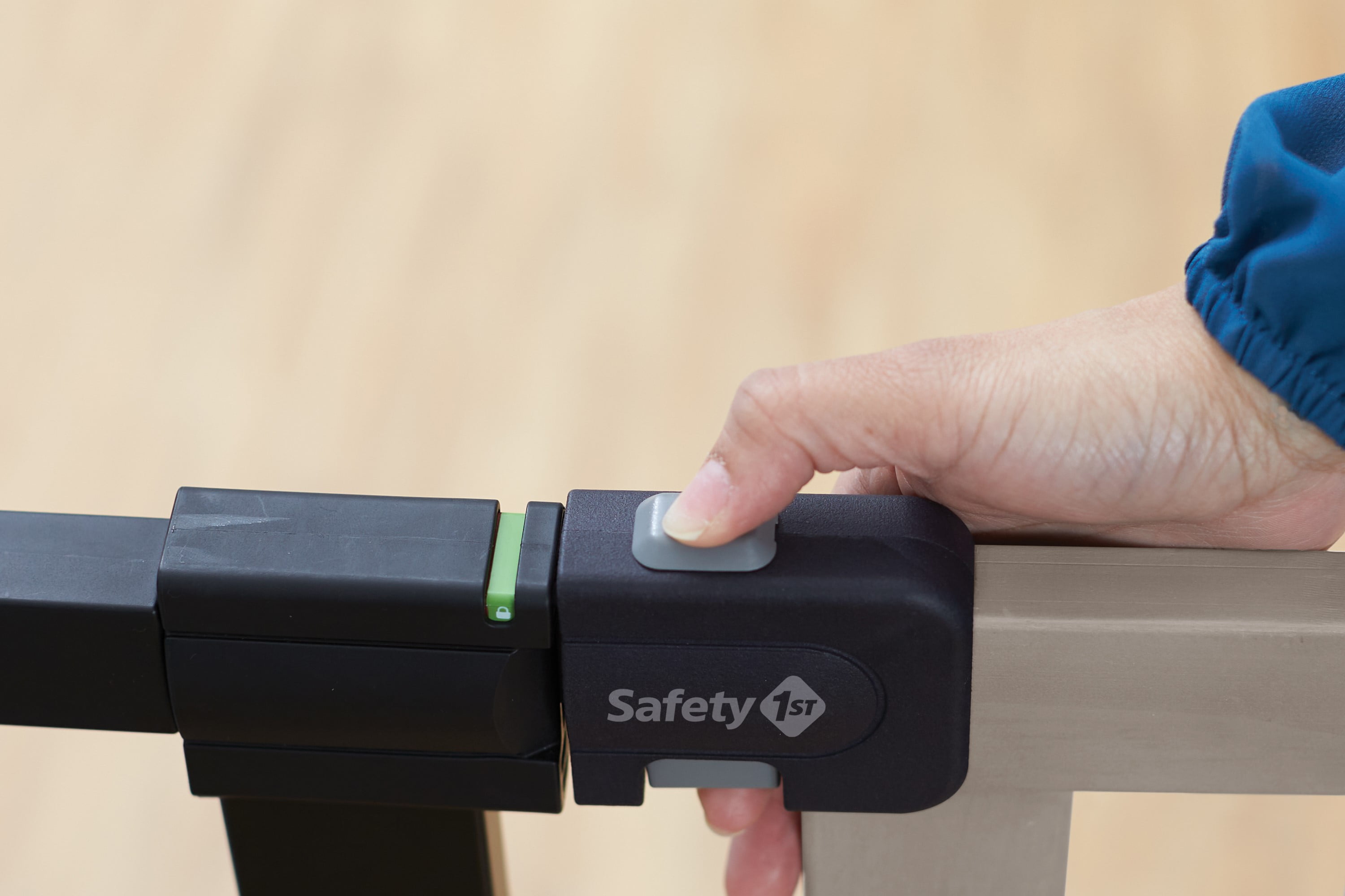Now that your baby is on the move, create child-friendly spaces in your home. For use between rooms, the gate’s flat-slat design, warm undertones, and contemporary finish blend in seamlessly with your home décor. The walk-through style makes it easy to get around the house, with no need to reinstall each time you pass by. The gate also comes in handy when you’re trying to keep pets out of certain rooms. The Wood-and-Metal Flat Slat Gate features SecureTech®, Safety 1st’s red-to-green indicator on the top rail that allows you to see when your gate is securely locked. When the gate is uninstalled, the frame may appear bent. This is normal. The frame is constructed in this manner to provide pressure to remain in place when installed properly. Safety 1st believes parenting should have fewer worries and more joyful moments. As the first and only leader in child safety, Safety 1st is here to give you peace of mind so you can spend less time worrying and more time enjoying every first you experience with your child.