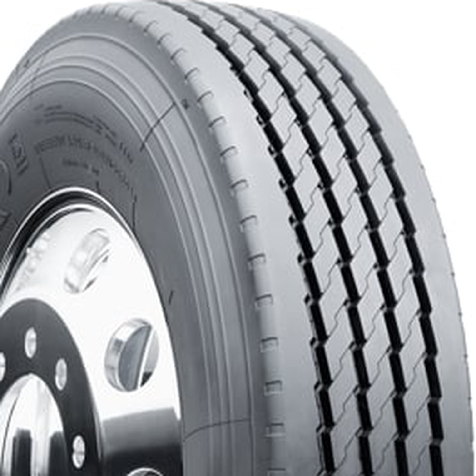 5-rib tread pattern promotes stable on-road performance and even tread wear Tough rubber compound for protection against cuts and chips Solid shoulder design promotes lateral stability for all positions while also fending off uneven wear Wide tread footprint maximizes tread life and puts more rubber on the road to boost stability Deep longitudinal grooves quickly remove water from the tread to avoid the risk of hydroplaning on wet roads Size: 11R24.5 Load Range: H Product May Vary From Picture Wheel/Rim Not Included