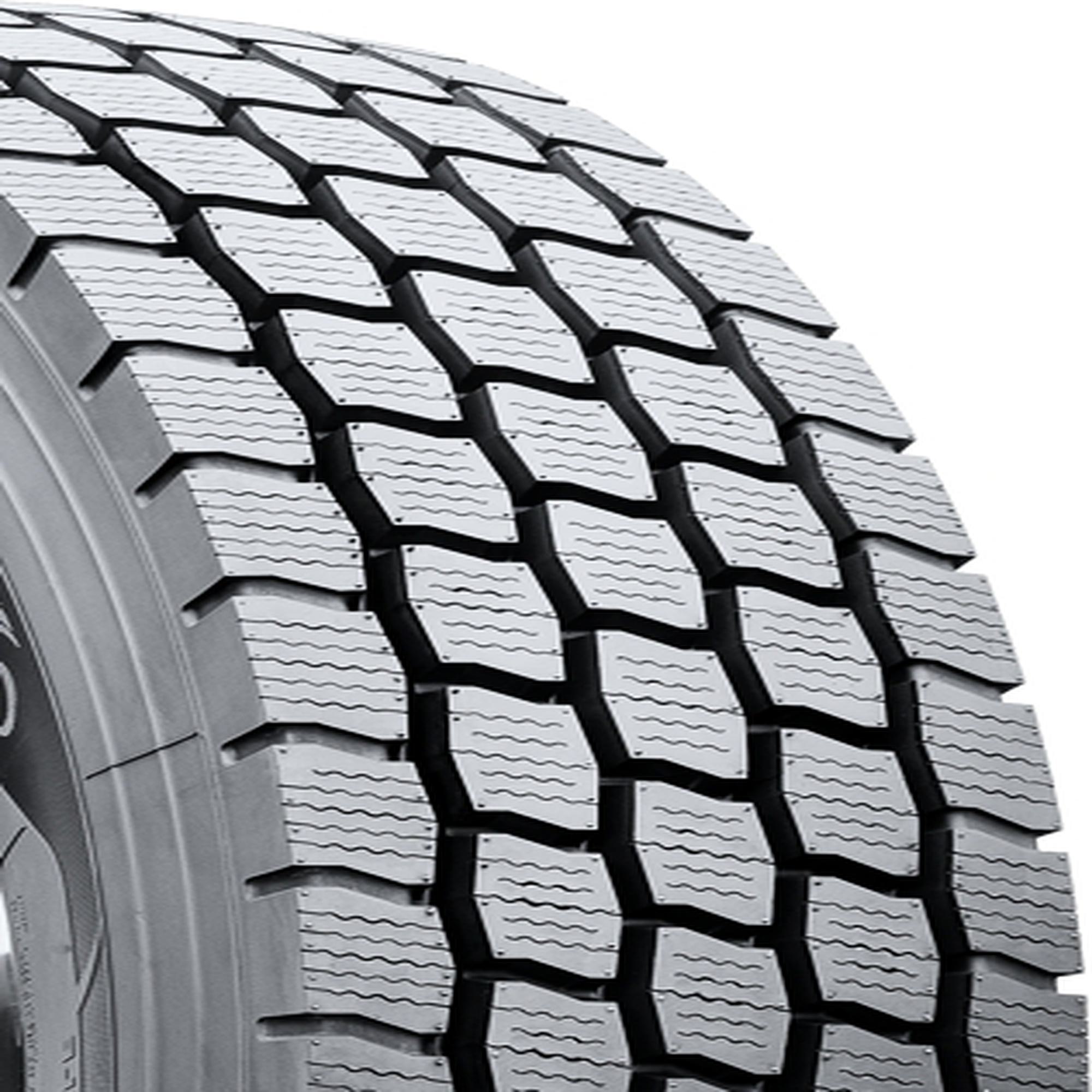 Wide footprint improves handling and stability while also promoting even wear for a longer tread life Extensive sipes bite into the road for better traction in wet conditions while also dissipating heat for a longer tread life Tie-bars on external lugs keep the tire rigid to further enhance stability and prevent irregular wear Four zigzag grooves quickly evacuate water from the tread to avoid hydroplaning Built with a deep tread depth that promotes a longer service life so that drivers get a lower cost per mile out of their purchase Size: 11R24.5 Load Range: H Product May Vary From Picture Wheel/Rim Not Included