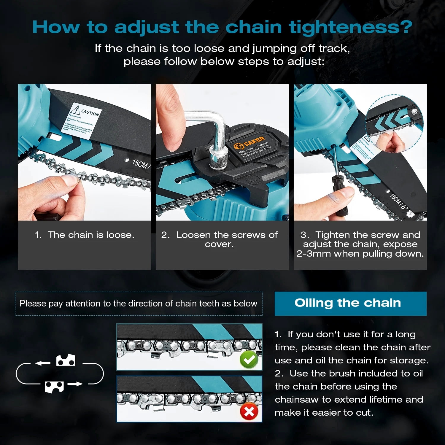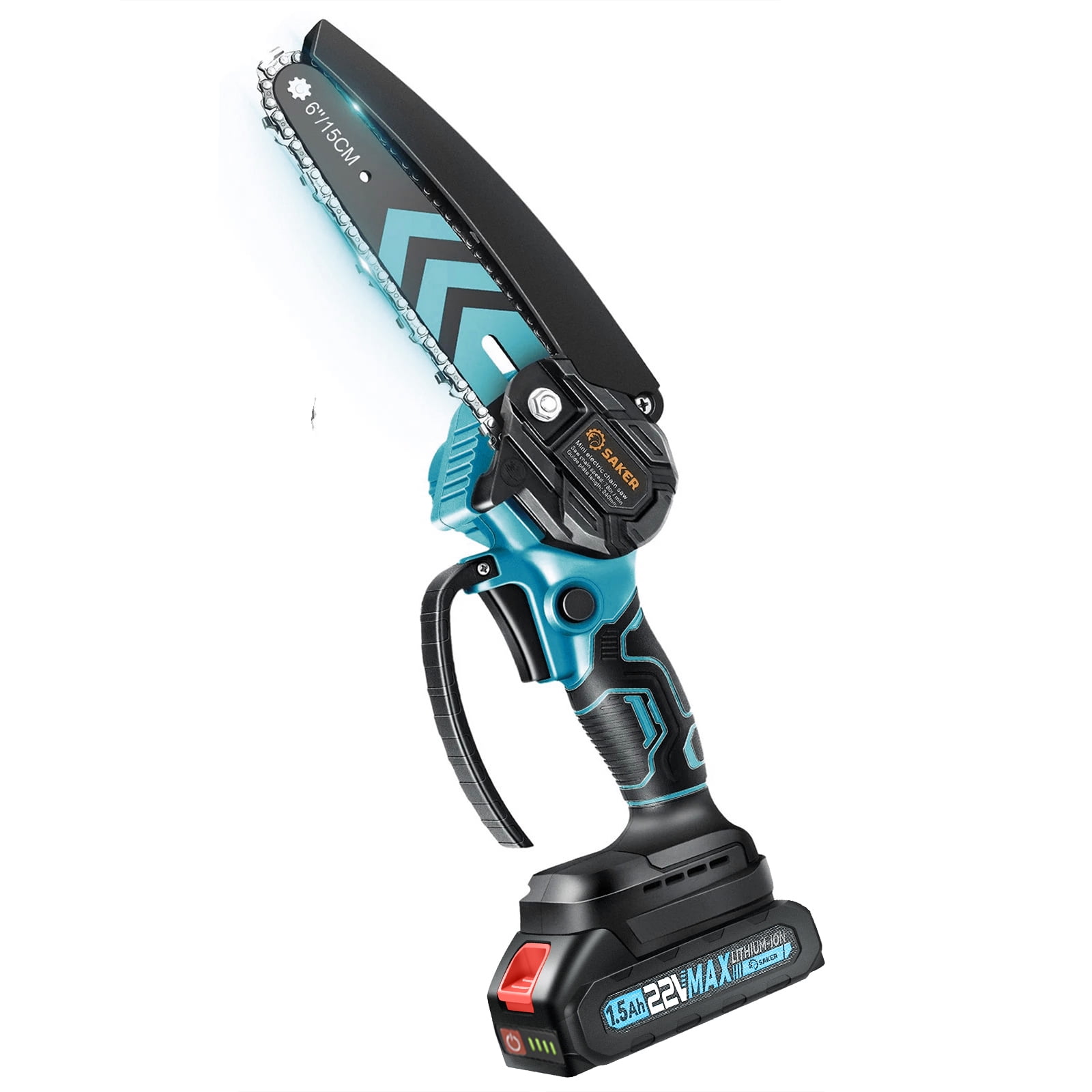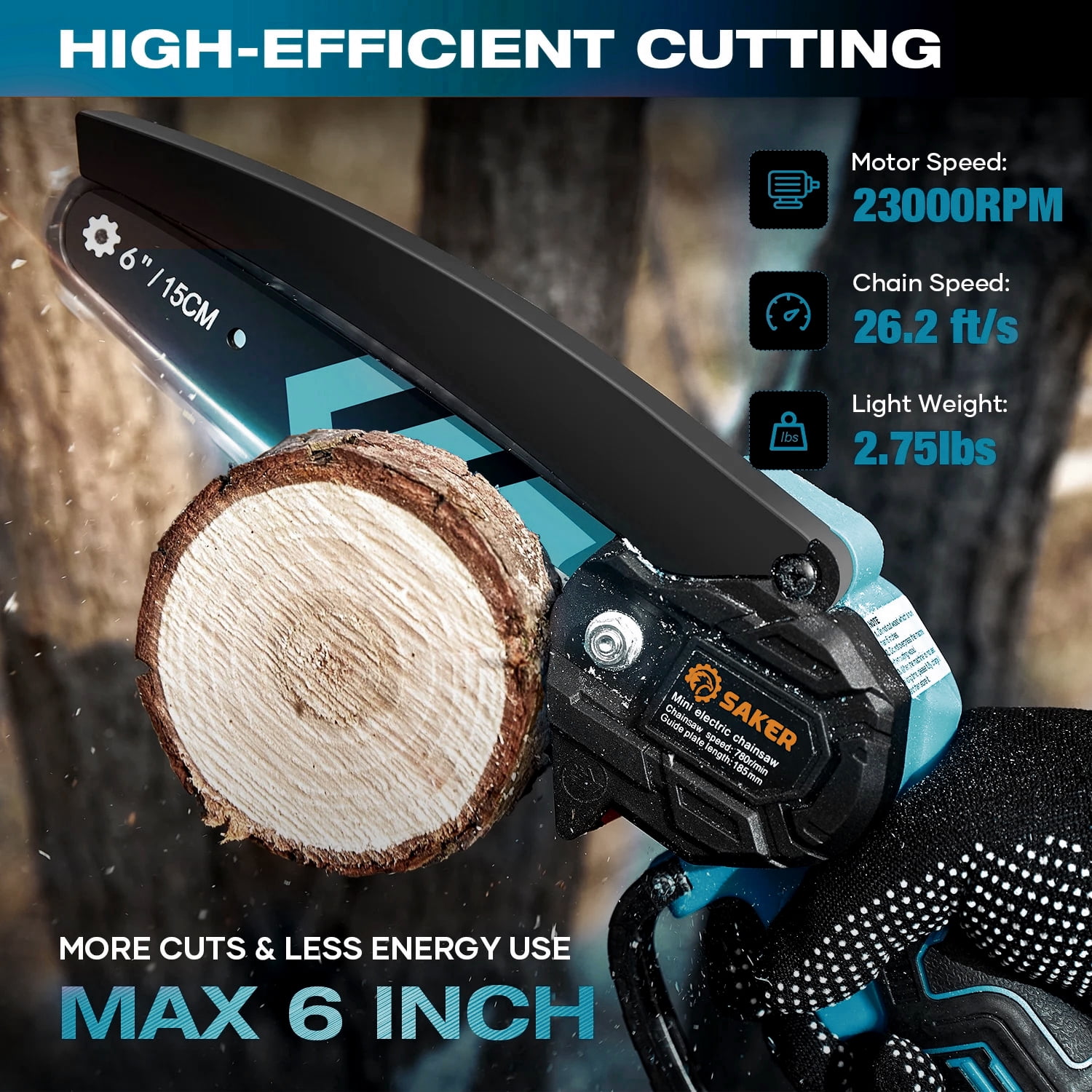 Saker 6 inch Mini Chainsaw with 2 Batteries & 2 Chains, Electric Chainsaw for Cutting, Ideal for Gardening, Tree Trimming, Blue