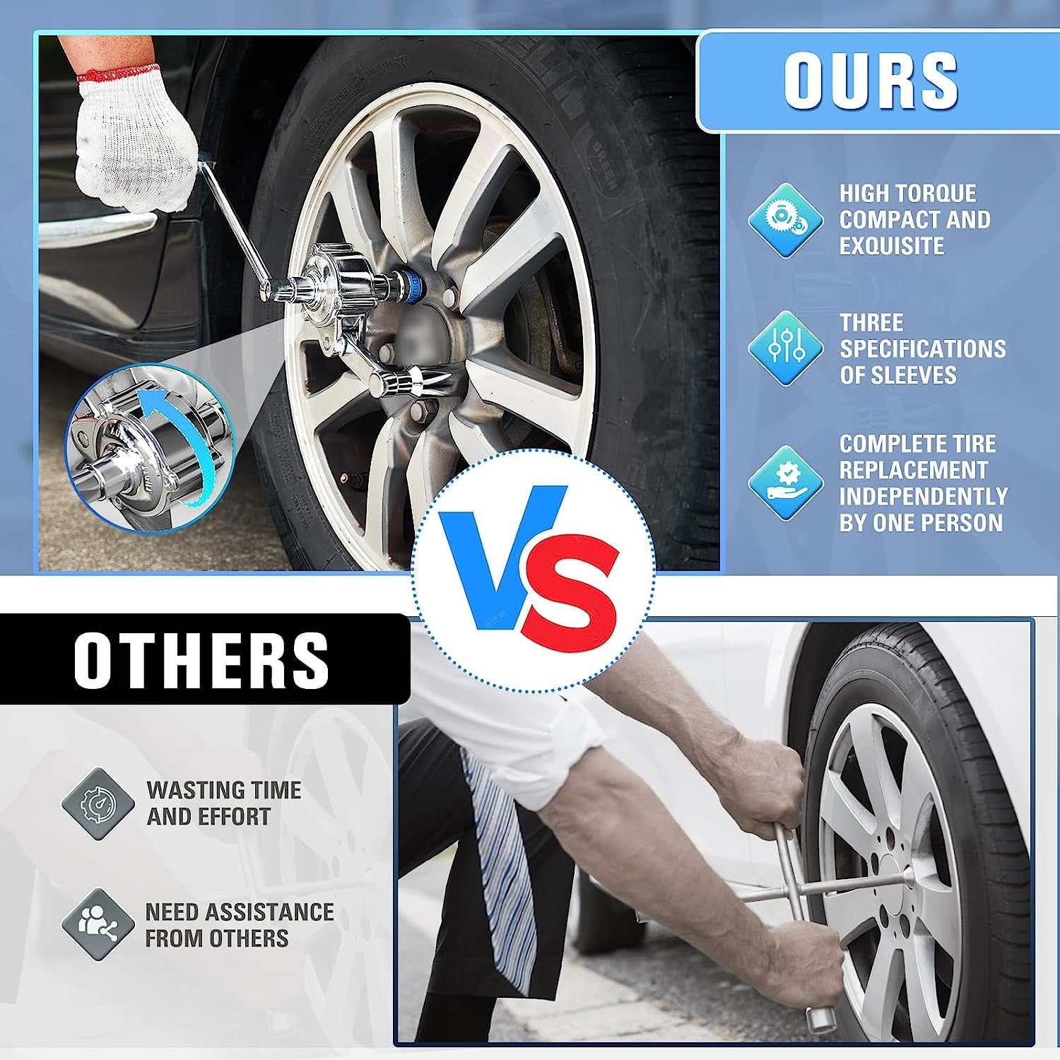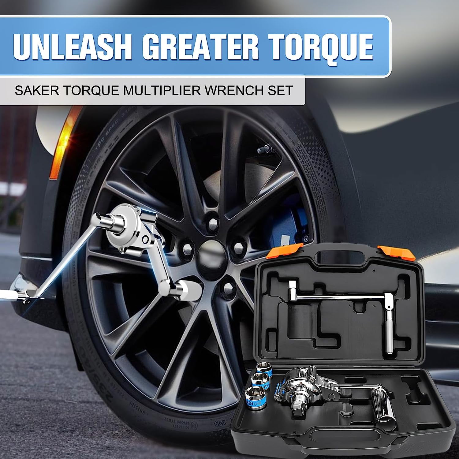 【Professional Tire Removal and Installation】- The Saker torque multiplier wrench set is a dependable and efficient tool specifically designed for loosening automotive tires. Built to provide increased leverage, it simplifies the process of tightening or loosening bolts and nuts with high torque demands. This set eliminates the need for impact tools or compressors, offering a straightforward and user-friendly solution for tire removal and installation. 【Maximum Safe Torque Output】- When stubborn tire nuts resist standard wrenches, the Saker heavy-duty torque multiplier wrench set steps in as the ultimate solution. It dramatically increases applied torque, delivering the force needed to tackle tight bolts that ordinary tools can’t handle. With its impressive 1:20 gear ratio, it effortlessly removes tight or rusty nuts, making it a must-have addition to your toolkit. 【Durable and Ergonomic Design】- Crafted from premium chrome vanadium alloy steel, the Saker torque multiplier wrench set ensures exceptional strength and resistance to wear. Its robust construction guarantees long-lasting durability, even under heavy use. The non-slip threaded handle enhances grip, allowing for smooth rotation without slippage, making it easy for anyone, including female drivers, to loosen jammed nuts effortlessly. 【Superior Leverage for Tough Bolts】- The Saker torque multiplier wrench set is engineered to provide exceptional leverage, making it ideal for dealing with tight bolts. It outperforms conventional tools, offering unmatched power to handle even the most stubborn bolts. When standard tools fail, this wrench provides the extra force required to get the job done efficiently. 【Wide Range of Applications】- The Saker torque multiplier wrench kit is highly versatile, suitable for various tasks. It comes with adjustable settings and interchangeable sockets (11/16″, 3/4″, 13/16″ or 17mm, 19mm, and 21mm), along with a swivel wrench, making it perfect for removing automotive lug nuts. Beyond tire changes, this kit is also ideal for other high-torque applications, adding to its versatility and value in specialized environments.