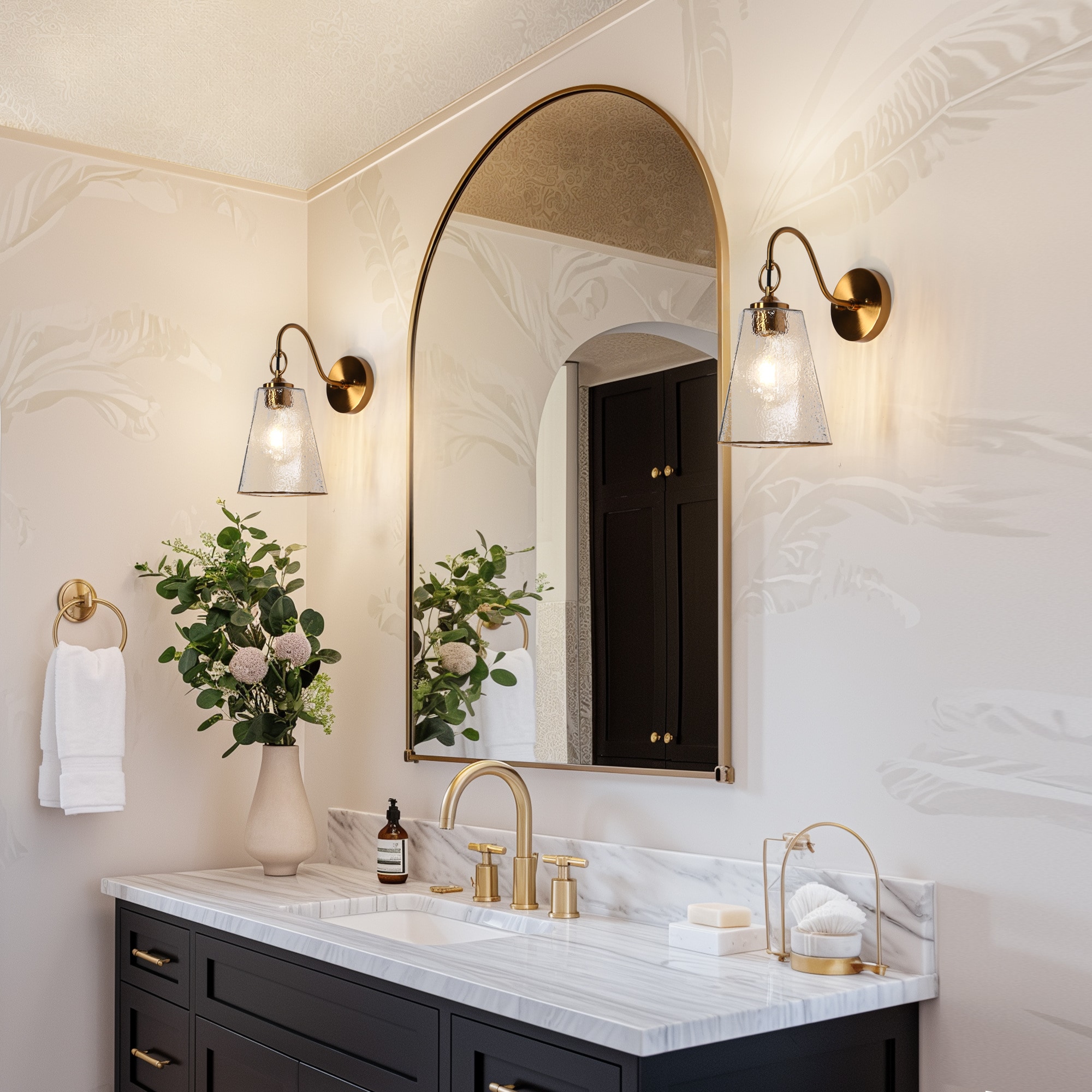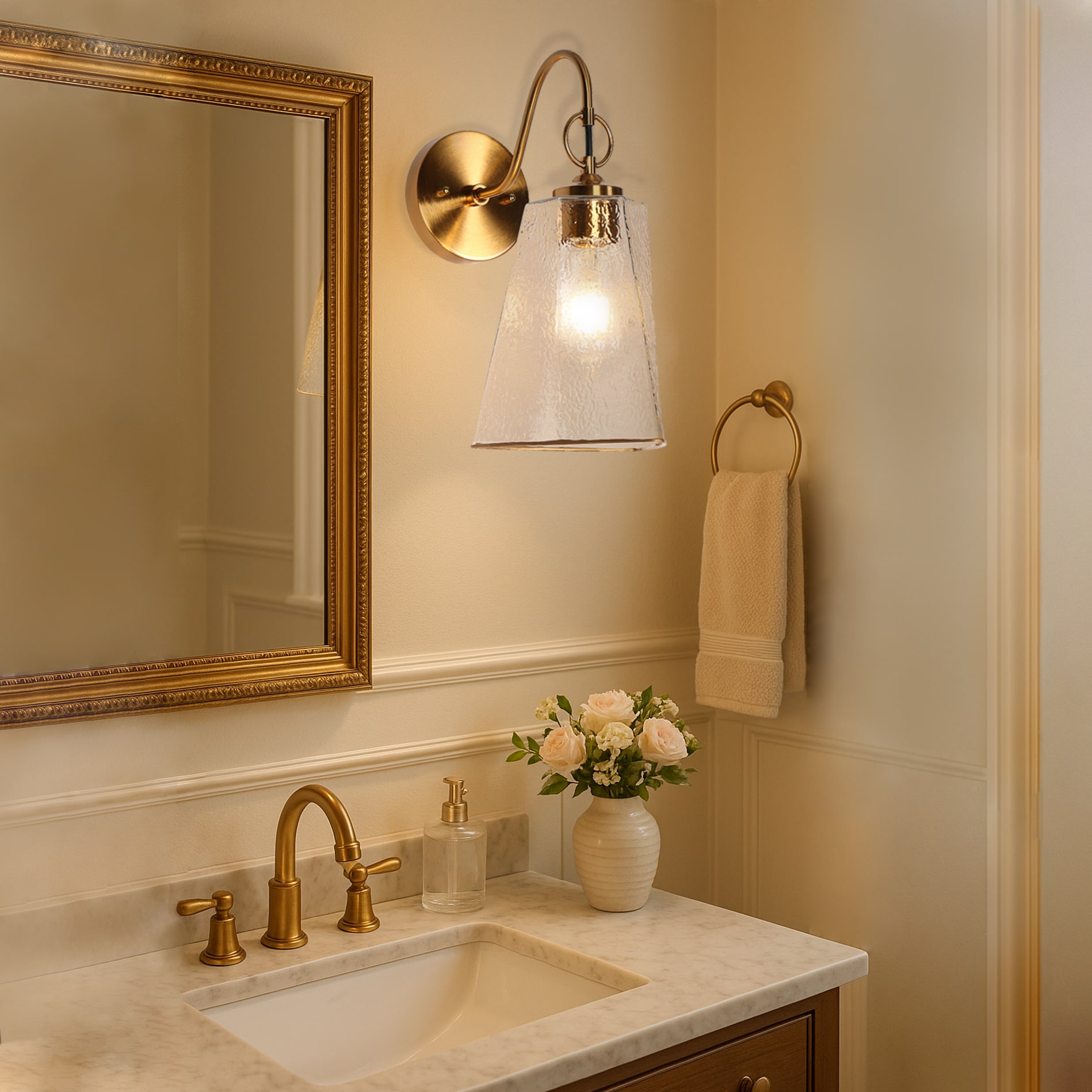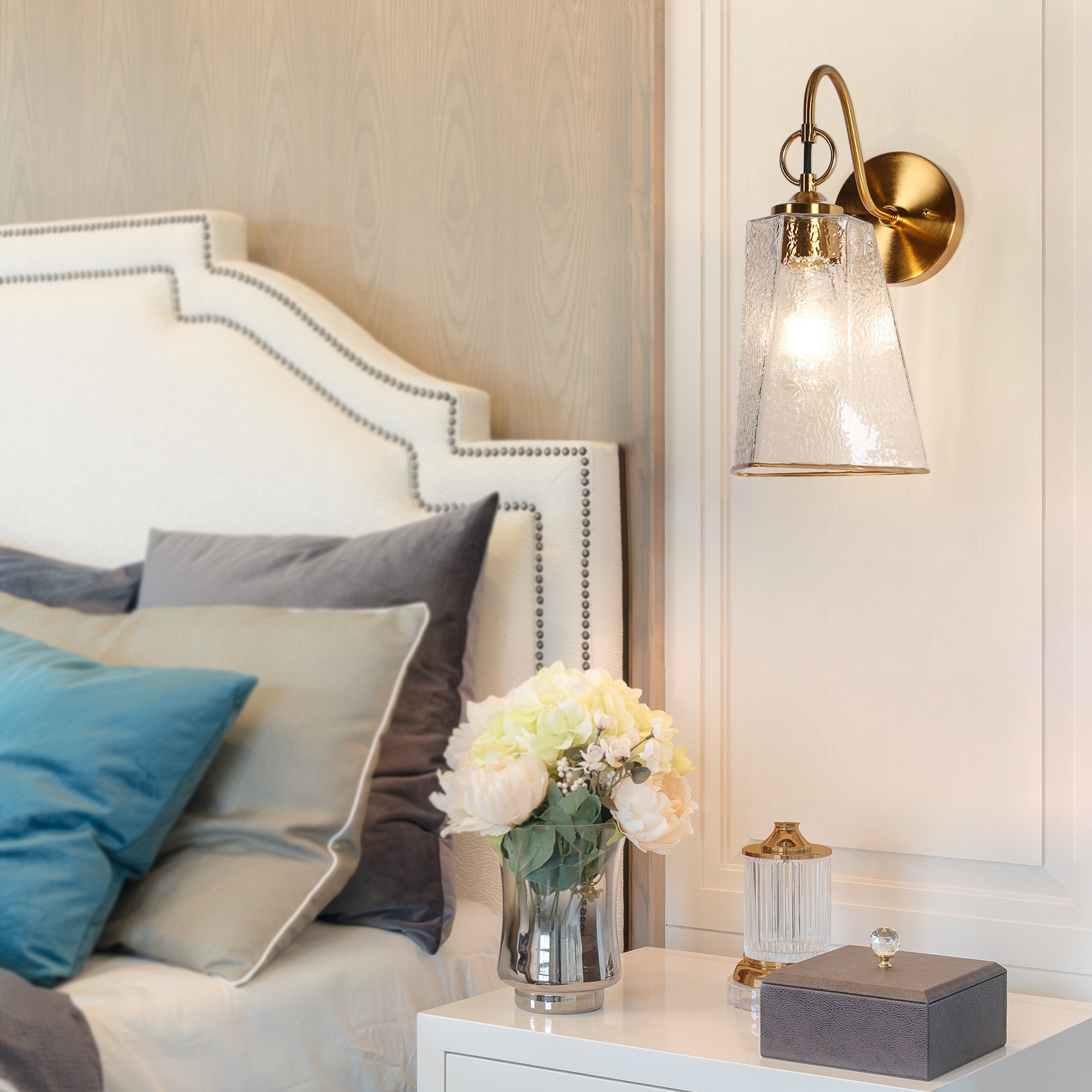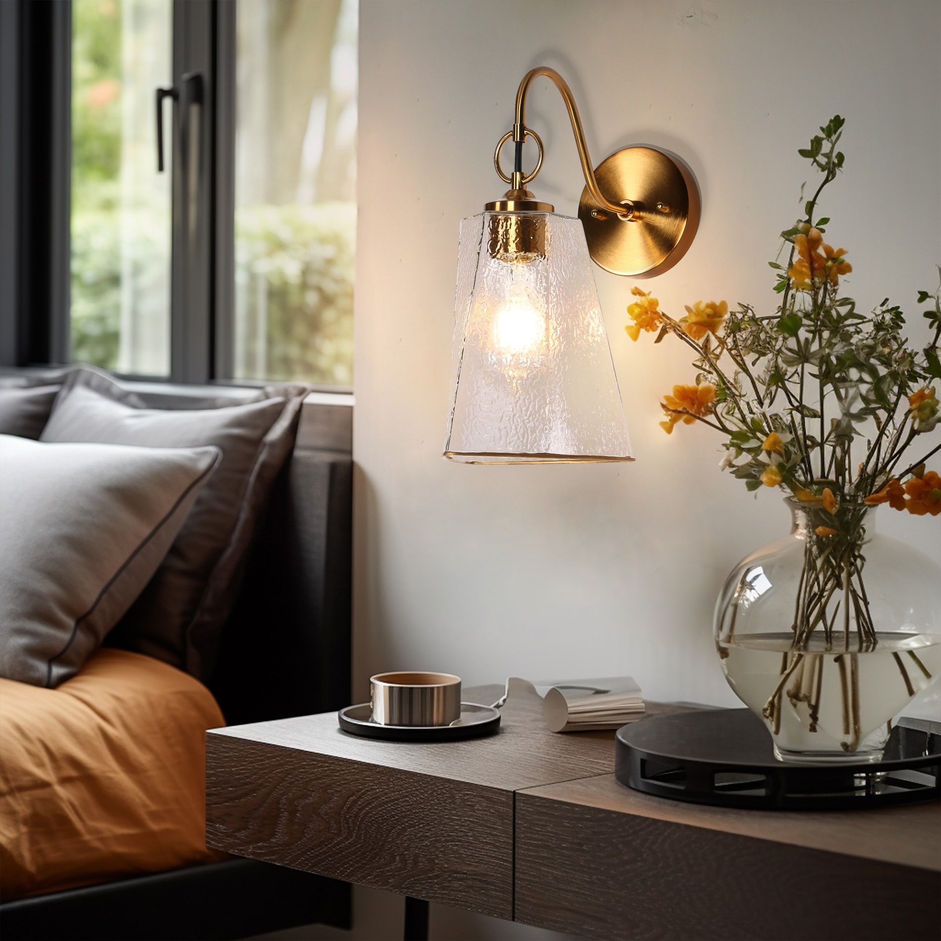 Elevate your home decor with our stunning LNC Sduiaor wall lamp, featuring a sophisticated blend of modern elegance and geometry charm. The water-textured glass of the cone shape allows for beautifully diffused light, creating a warm and inviting atmosphere.Inspired by the serene beauty of the moon’s reflection on the sea, the design captures the essence of ripples formed when the moonlight is interrupted by a stone. The textured waves surrounding the light bulb evoke the gentle movement of water, bringing a calming and natural element to your space.Crafted with exquisite attention to detail, this chandelier showcases high-quality materials and a durable electroplated finish that ensures it maintains its dazzling shine without fading. The LNC Sduiaor collection includes chandeliers(5740025), pendant lights(5691685 and 5691668), and wall sconces,effortlessly enhancing any area in your home—from entryways and dining rooms to kitchens, bedrooms, living rooms, bathrooms, and lounges. Transform your space into a harmonious sanctuary of light and elegance, creating a unified luxurious ambiance that reflects your personal style.