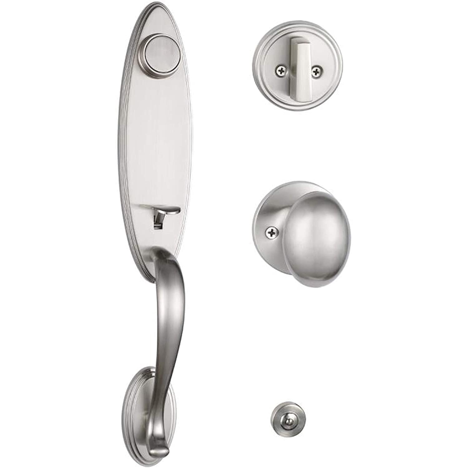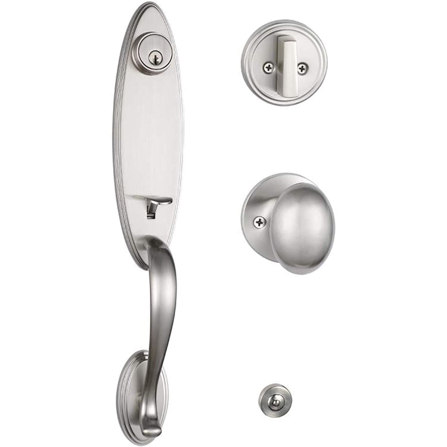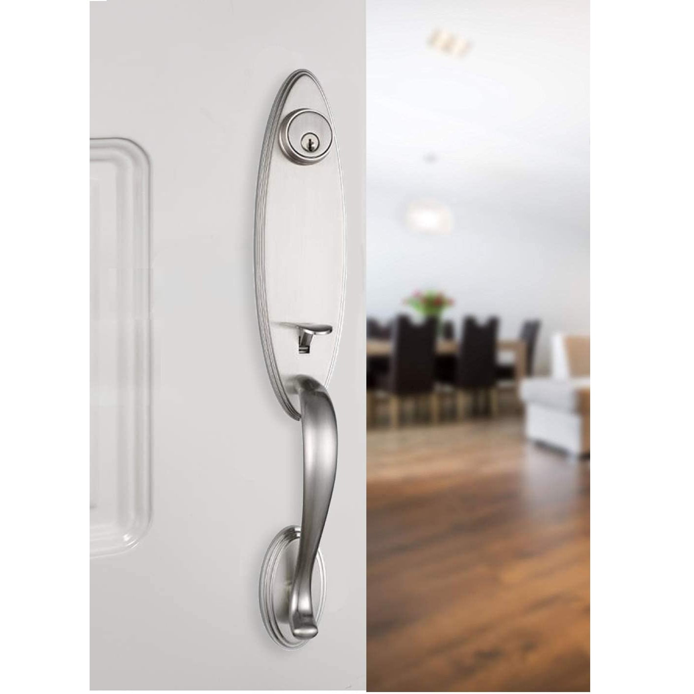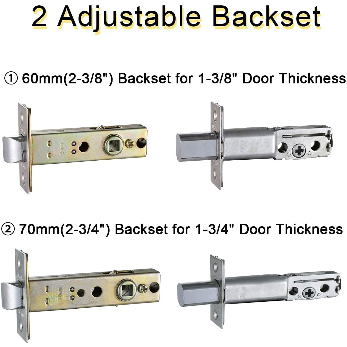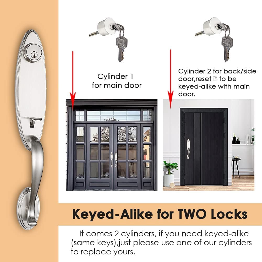 【2 pcs Keyed-alike Cylinder】you can use one of our cylinder to replace your cylinder of back door or side door so that they are the same keys with the main door,they use the same key. 【Adjustable Backset】2 sizes Latch: 2-3/8” or 2-3/4”(60mm or 70mm) to fit Door thickness 1-3/8” to 1-3/4”(35-45mm). 【Reversible Door Lever】 Fits left-hand and right-hand doors. 【Easy to Install】Installation instruction template and hardware are contained in the package , you need only a screwdriver to install or remove it. 【Material】 Zinc Alloy.Satin Nickel Finished. 【Trusted Warranty】Lifetime mechanical warranty and offer unconditional returns. Package Includes: * 1 pcs keyed Exterior handleset * Interior Lever door handle (reversible) * 2 pcs keyed-alike cylinder * Radius square corner strike (with latch box) * Deadbolt with 4 keys * Diagram template for installation Why choose us? We offer U.S. Stock and WFS Service to provide you with the Fastest delivery Service, So you don’t need to spend more time. Don’t worry the Size, we offer unconditional returns. If you have any dissatisfaction, please let us know and we will try our best to solve these problems for you.