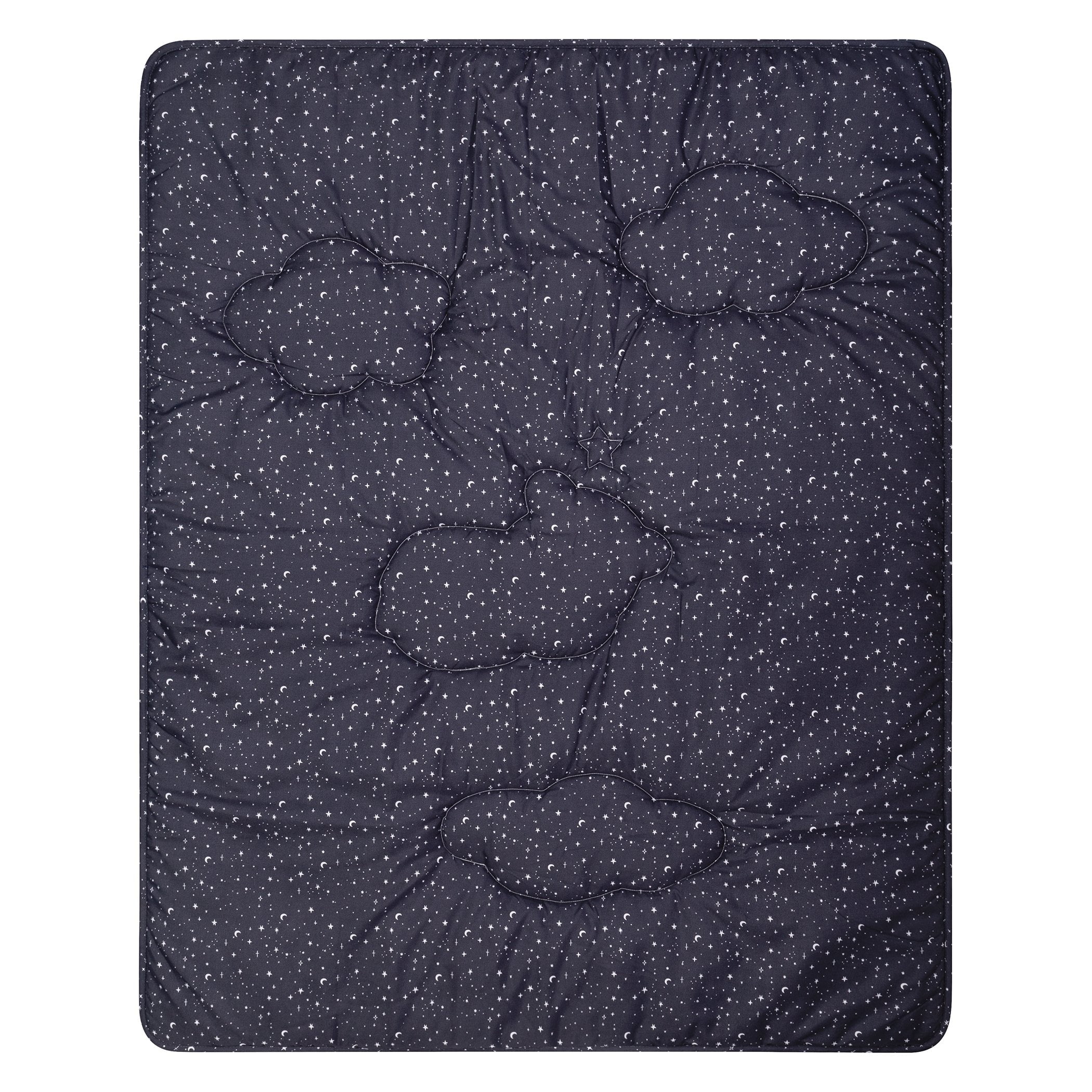 Let your little one drift off to sleep in a bed of clouds with the Bearly Dreaming 5 Piece Crib Bedding Collection by Sammy & Lou. An adorable fuzzy bear rests on the moon among clouds and stars in a lovely color palette of navy, light blue, grays and white. The perfect collection for your little dreamer! 5 Piece Crib Bedding Set includes: Quilt, Skirt, Fitted Crib Sheet, Musical Crib Mobile and Plush Toy. Please adhere to JPMA’s Safe Infant Bedding Practices.