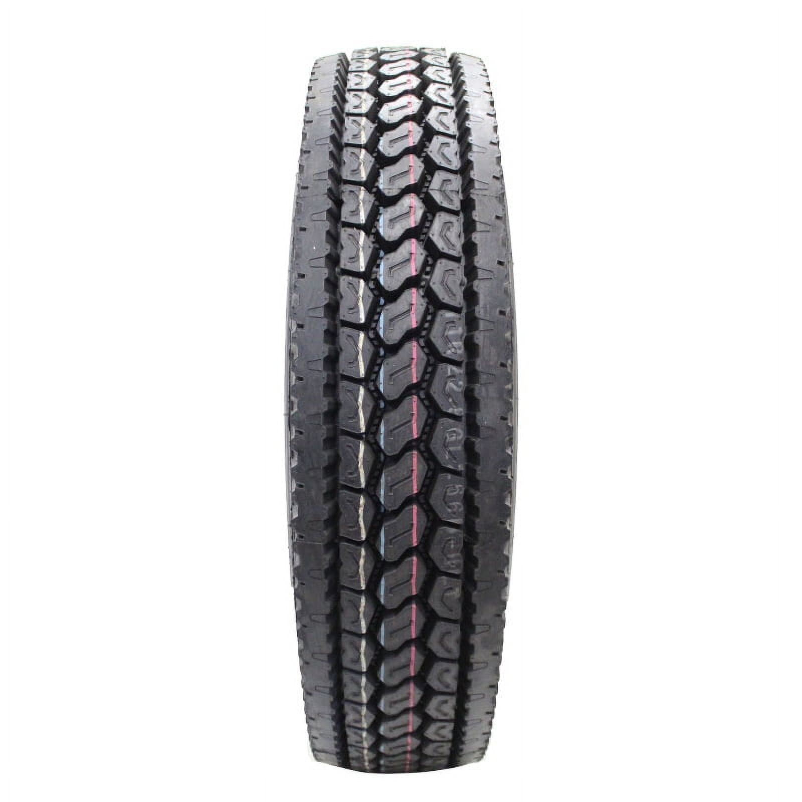 Designed for use on the drive axle of semi-trucks Closed shoulder design for enhanced stability and even wear Dual circumferential grooves to resist hydroplaning Deep tread pattern for improved grip Advanced compounds for superior wear and low rolling resistance Size: 295/75R22.5 Load Range: B Product May Vary From Picture Wheel/Rim Not Included