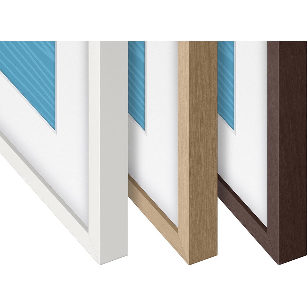 Customize the style Pick from two different bezel design types. Choose Modern to complement your home’s contemporary vibe or select Beveled for a more traditional appearance. Get a fresh new look in a snap How to install Swapping out the bezel color is a breeze — The Frame’s interchangeable bezels are magnetic so you can customize them at your whim. Find the right bezel for your Frame TV based on size Modern bezels are compatible with 43-75″ 2021 The Frame TVs. Beveled bezels are compatible with 65″ and 55″ 2021 The Frame TVs.