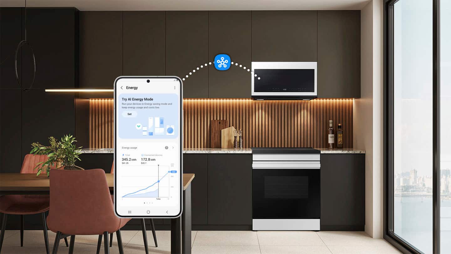 Connect your microwave to Wi-Fi and the SmartThings app to remotely adjust ventilation speed, lighting, and cook time right from your smartphone, and receive alerts when heating or cooking is finished.¹