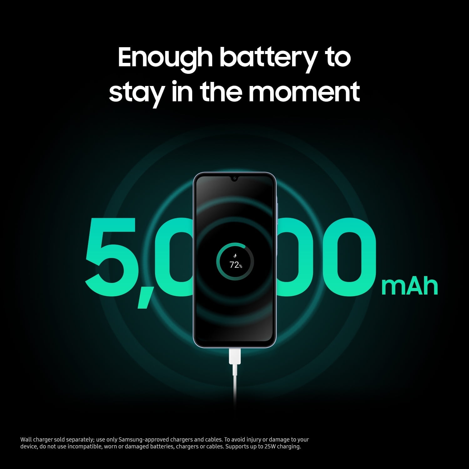 Take beautiful pictures, watch content on a superfluid display and stream with virtually lag free 5G* on Galaxy A25 5G. Packed with all the essentials you need, like Samsung Wallet and up to four years of software updates, this phone makes awesome features easily available to everyone. Capture pics from any angle with a triple lens camera, and enjoy free shows and movies for free on Samsung TV Plus, all on a clear, fluid screen. Blast your favorite tunes on stereo speakers, and live life with less worry as Knox Security helps protect your personal data. Getting all you need in a phone is now easier than ever with A25 5G. Awesome experience. Awesome value.