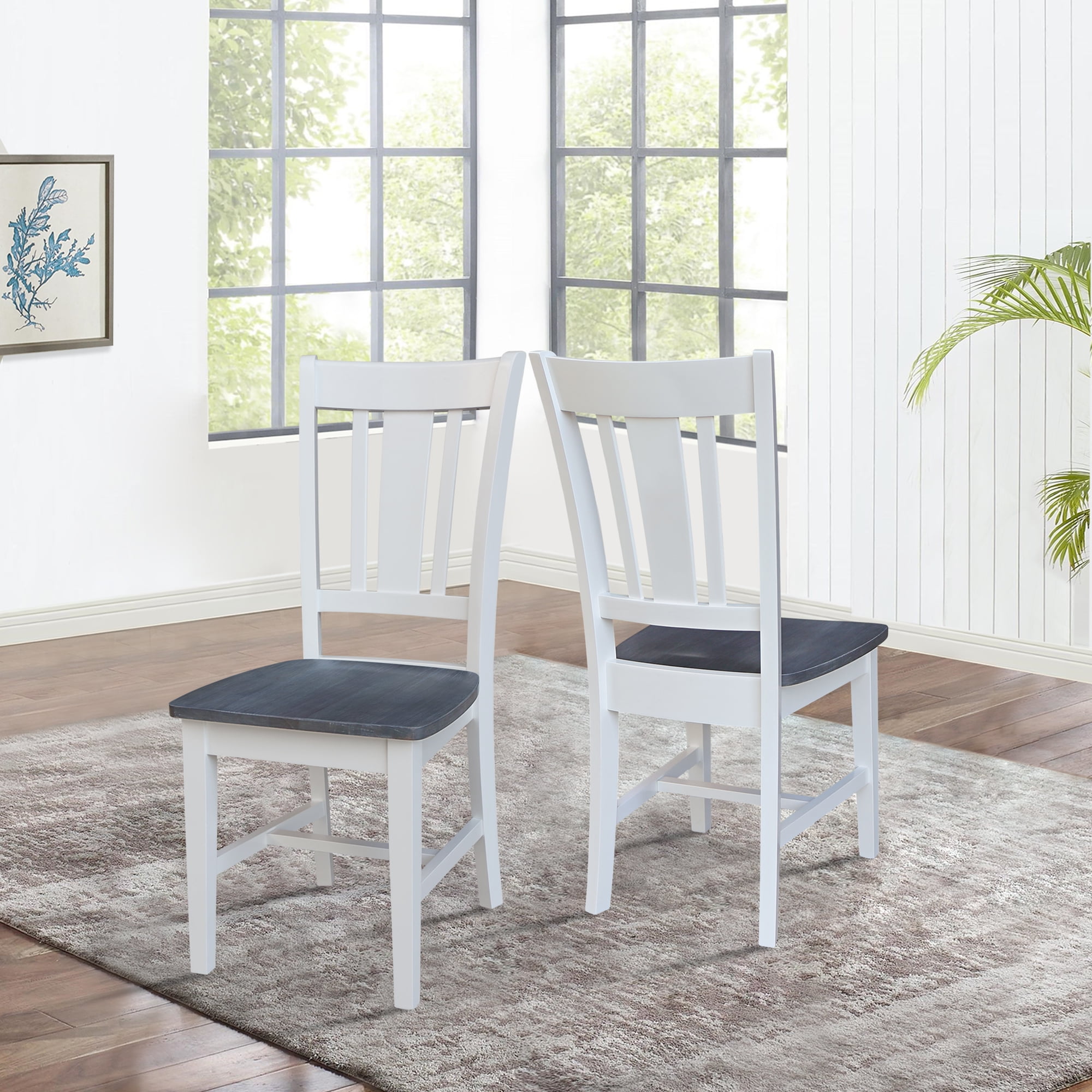 International Concepts home furniture is a beautiful collection of high quality, wood furniture with a traditional and elegant look. Featuring pieces you will be proud of for years to come and will easily complement any decor. All pieces are manufactured from solid Parawood which is more commonly referred to as Rubberwood. Parawood is eco-friendly in terms of being a fantastic renewable resource. As Parawood is considered to be a hardwood, it is actually a truly durable and strong wood. Features: Made of solid hardwood Set of two dining chairs Rated for residential use only, not intended for commercial use Ready to assemble Not rated for commercial use, for residential use only Specifications: Chair Dimensions: 17.3″W x 21.9″D x 38.2″H Seat Dimensions: 17.7″H x 17.3″W x 16.3″D Product Color: White/Heather Gray Weight Capacity: 250 Pounds
