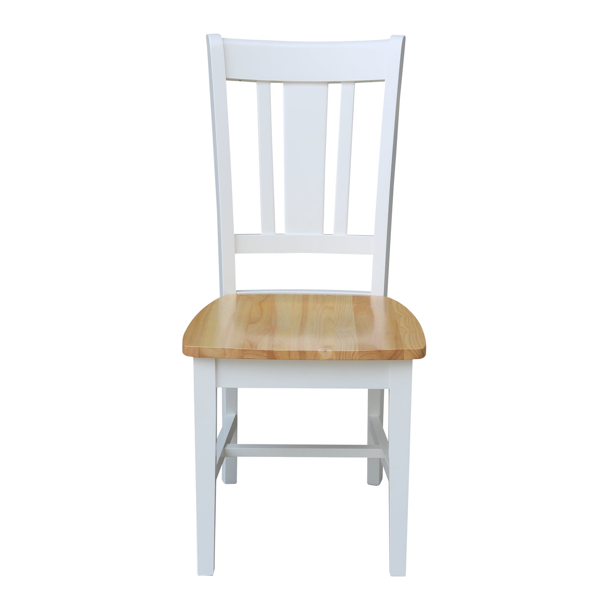 International Concepts home furniture is a beautiful collection of high quality, wood furniture with a traditional and elegant look. Featuring pieces you will be proud of for years to come and will easily complement any decor. All pieces are manufactured from solid Parawood which is more commonly referred to as Rubberwood. Parawood is eco-friendly in terms of being a fantastic renewable resource. As Parawood is considered to be a hardwood, it is actually a truly durable and strong wood. Features: Made of solid hardwood Box seat construction for easy assembly Set of 2 chairs Splat back design Ready to assemble Not rated for commercial use, for residential use only Specifications: Chair Dimensions: 17.3″W x 21.9″D x 38.2″H Seat Dimensions: 17.7″H x 17.3″W x 16.3″D Product Color: White/Natural Weight Capacity: 250 Pounds