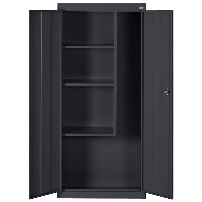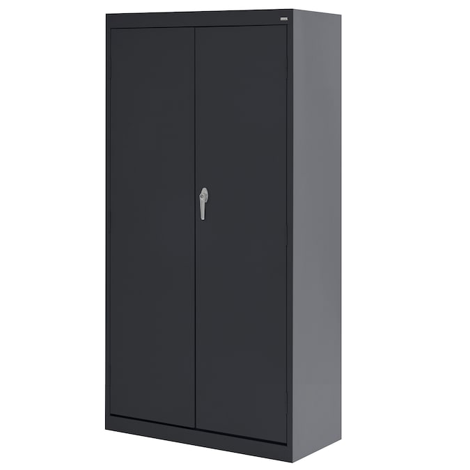 - Swing handle with cam lock secures the cabinet