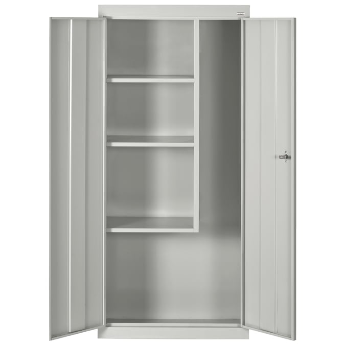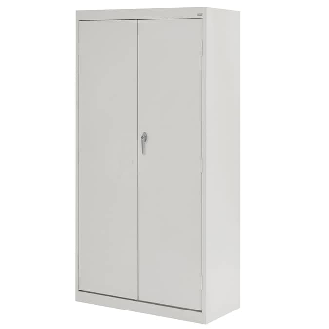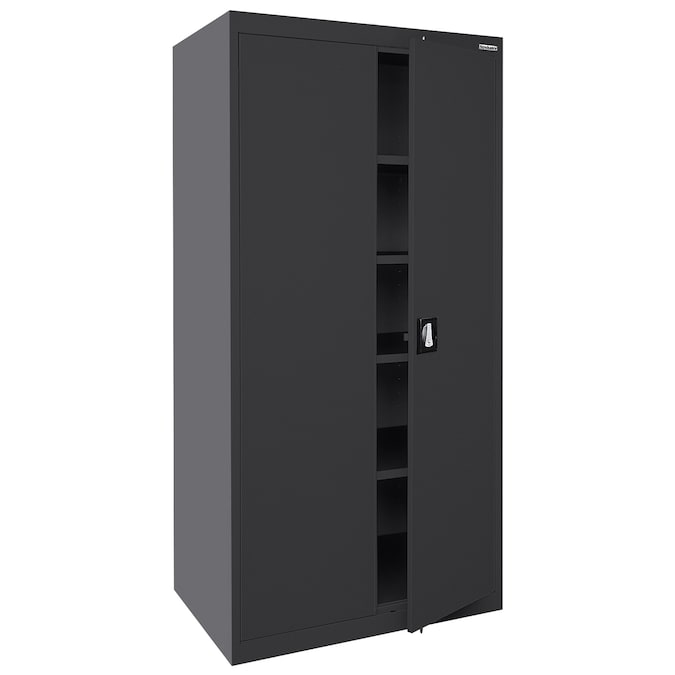 - Swing handle with cam lock secures the cabinet