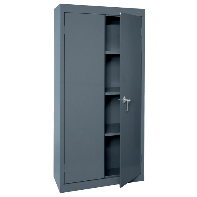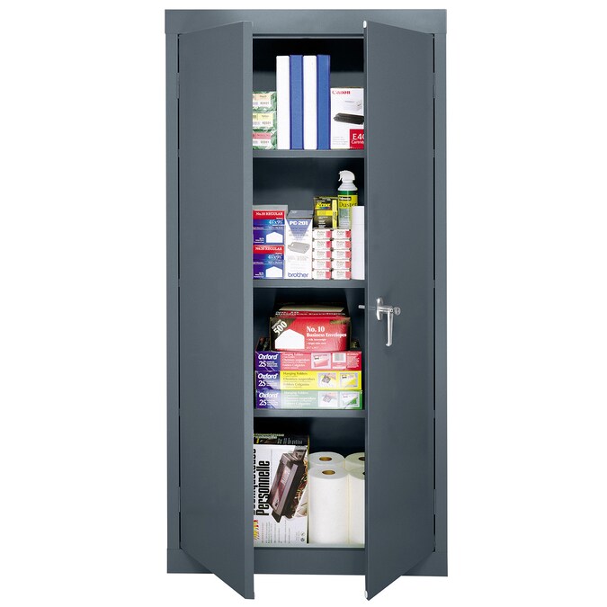 - Swing handle with cam lock secures the cabinet