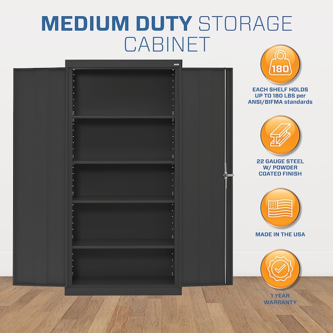 - Shelves hold up to 180 lbs of evenly distributed weight