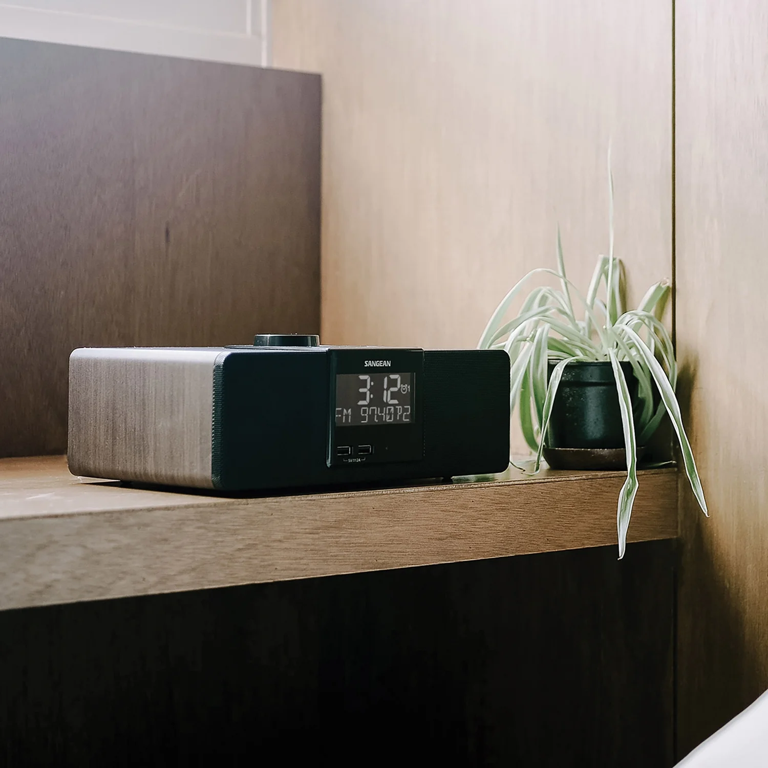 Sangean RCR-40 AM/FM Bluetooth Tabletop Wooden Clock Radio with Alarm and Sleep Timers