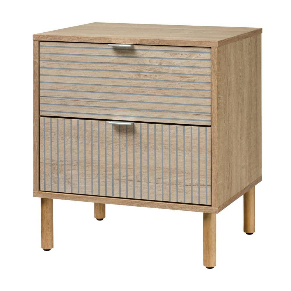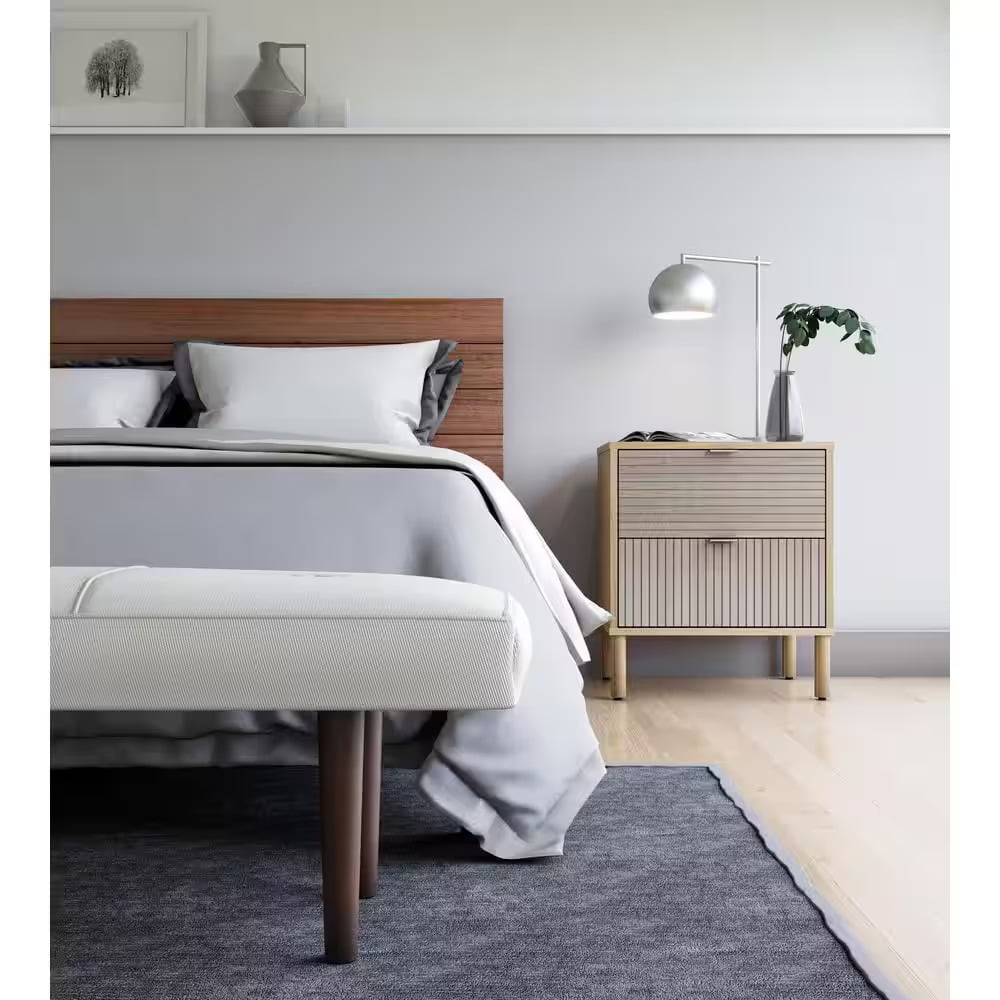 Enhance your bedroom with the Sango Merk 16 in. Brown 2-Drawer Nightstand, a stylish brown storage piece. This Sango nightstand features grooved drawer fronts, cylindrical wood legs with levelers, and discreet finger pulls for modern appeal. Its two drawers offer ample storage for bedside needs. Crafted for durability, its clean brown finish suits adult spaces. Perfect for organizing essentials, it’s a chic choice. Shop this brown nightstand now. Its sleek design stands out. Enjoy its lasting quality daily.