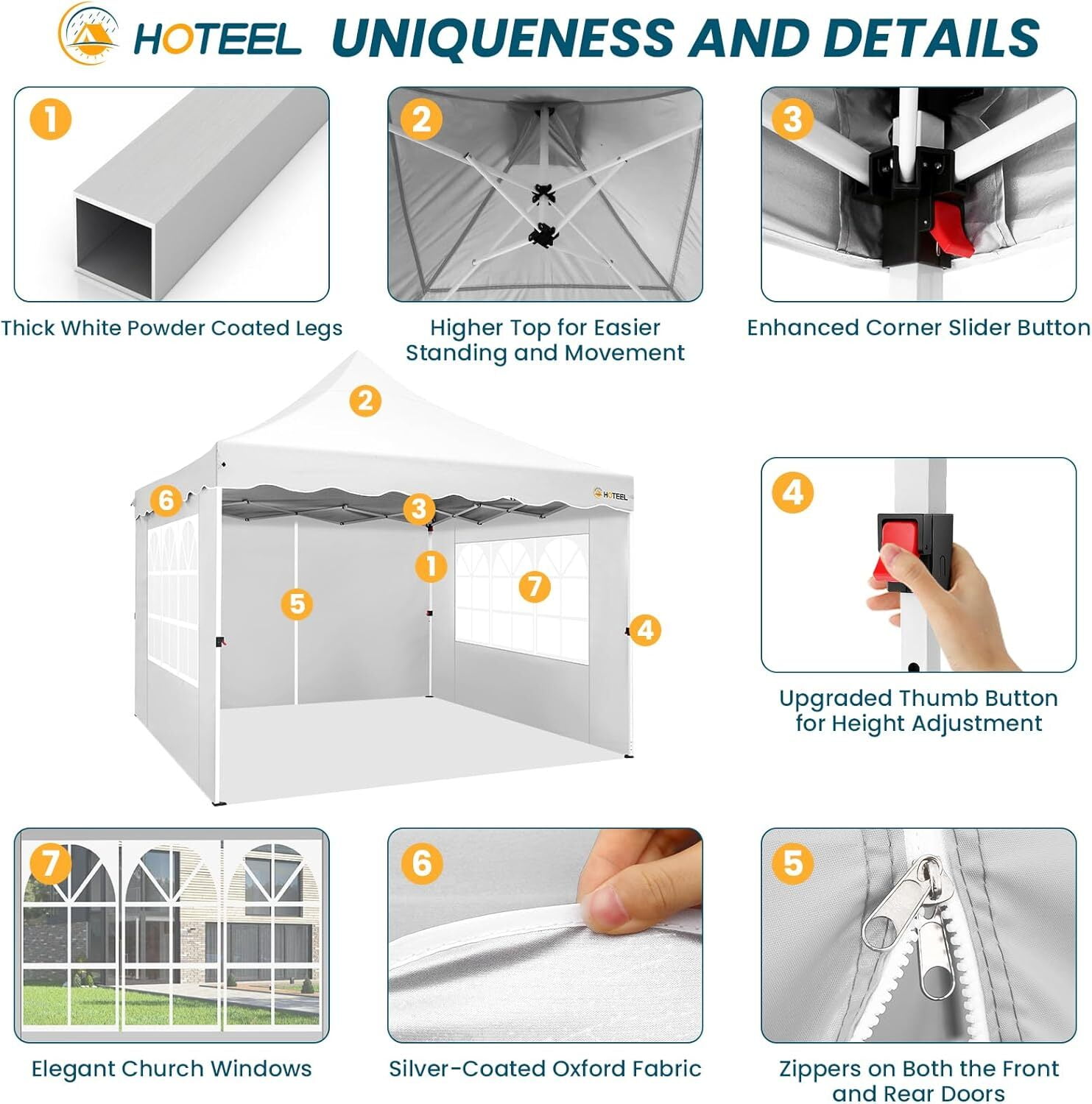 SANOPY 10′ x 10′ Pop up Canopy Party Tent with 4 Removable Sidewalls, Wave Eave Outdoor Waterproof Patio Gazebo Tent with Carry Bag, Backyards Camping Picnics, White
