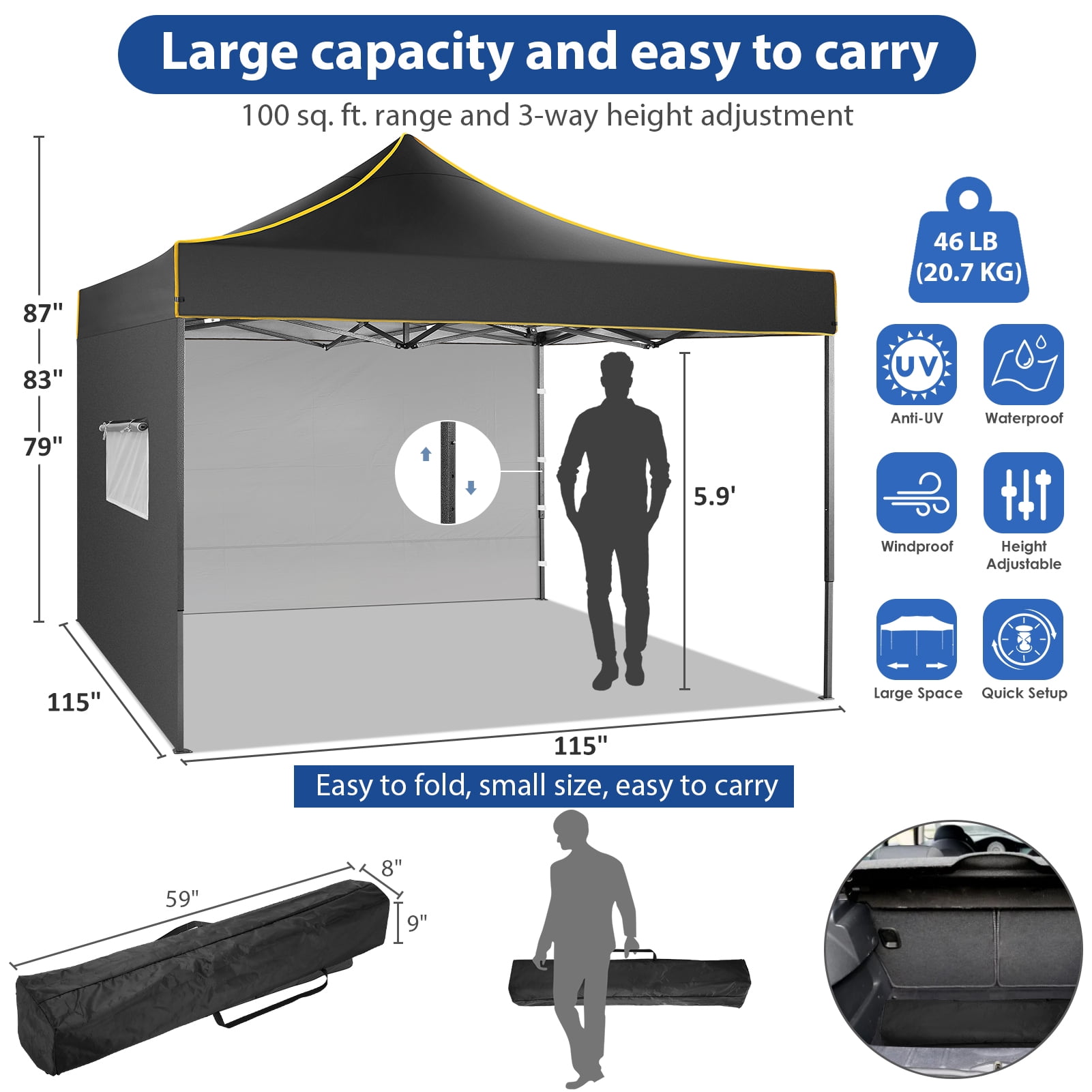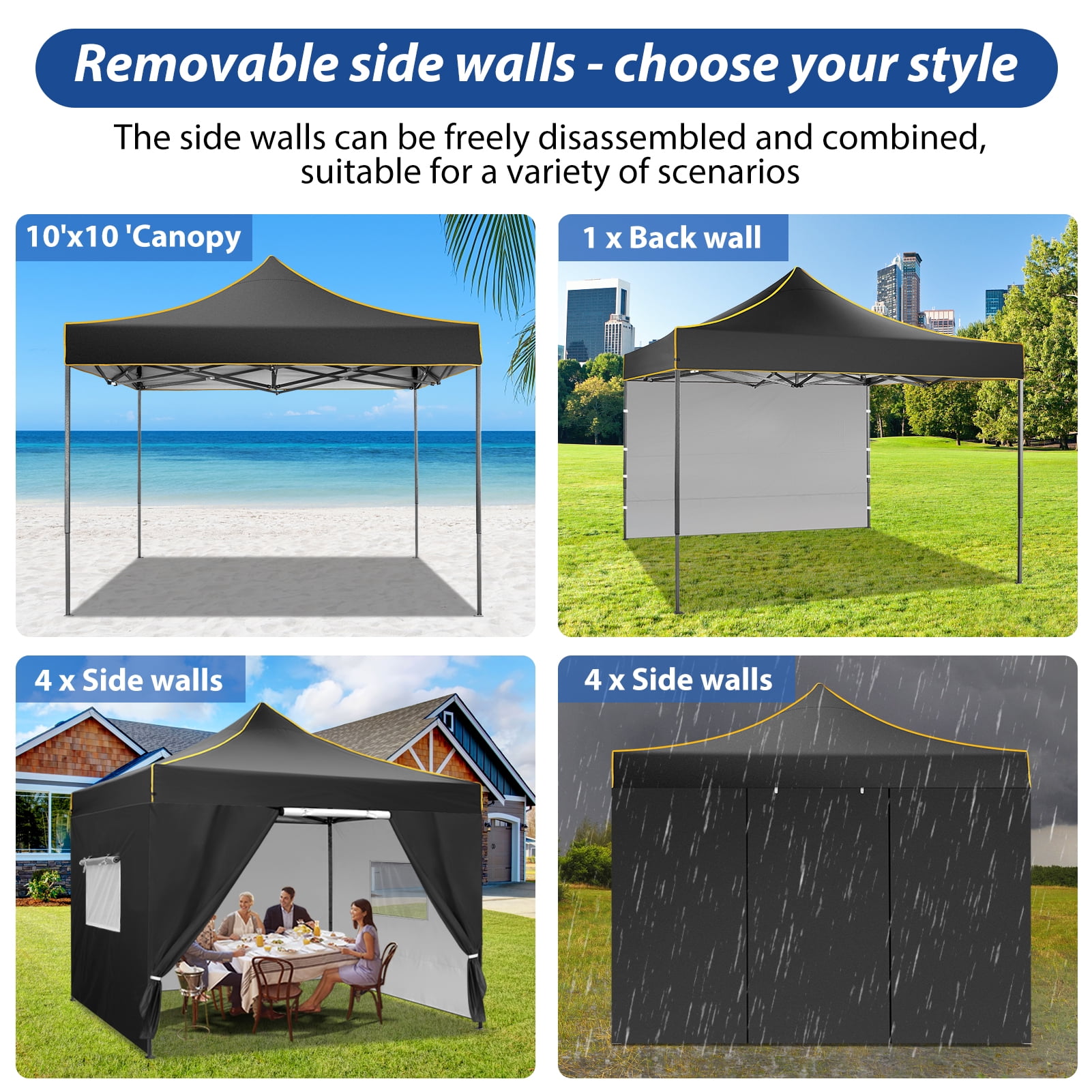 SANOPY 10’x10′ Heavy Duty Pop up Canopy, Outdoor Shade Instant Commercial Canopy, Portable Folding Beach Canopy with 4 sidewalls, Black