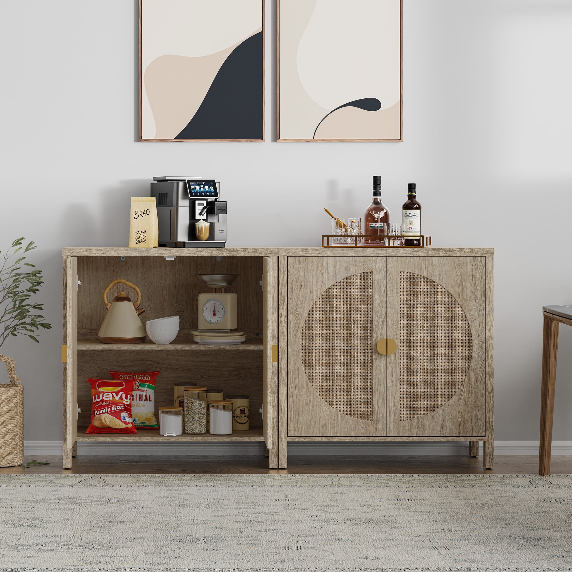 Sanspredet Rattan Sideboard Storage Cabinet , Accent Cabinets with Doors Buffet Cupboard Credenza with Adjustable Shelves for Kitchen Living Room, Dining Room, Bedroom
