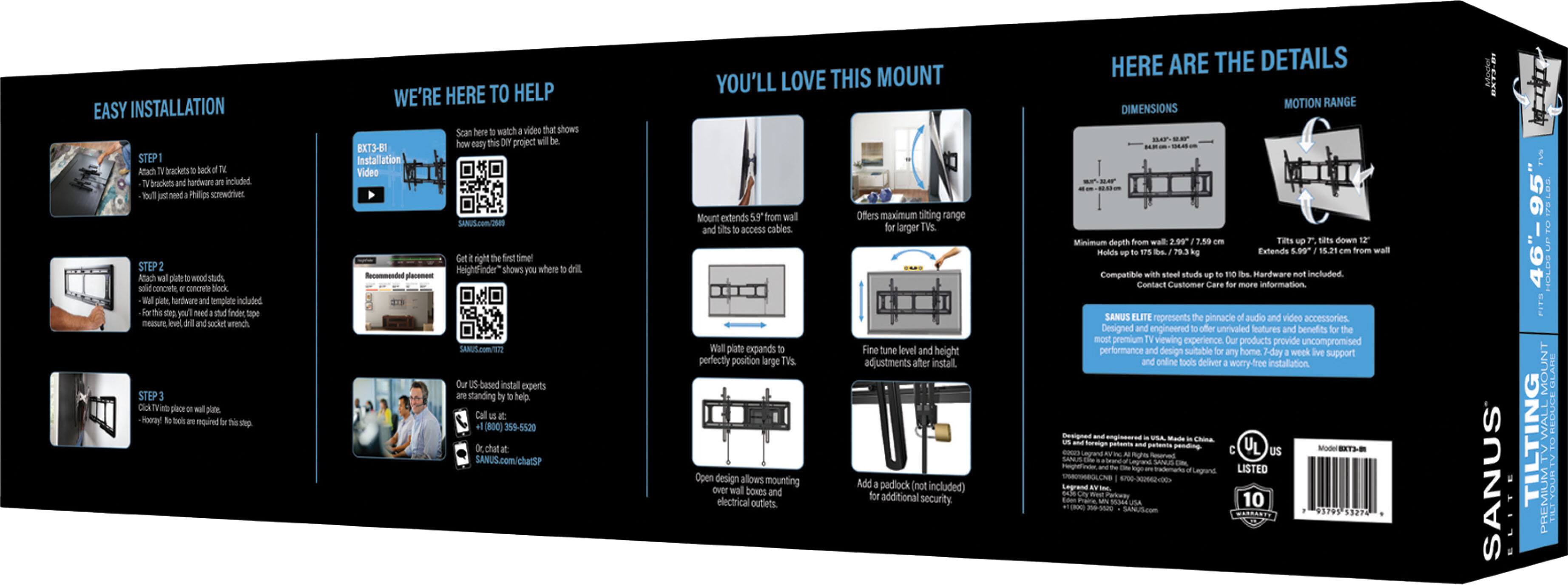 SANUS Elite – Advanced Tilt TV Wall Mount For Most 46″ – 95″ TVs – Extends 5.9″ for Easy Cable Access and Max Tilt – Black
