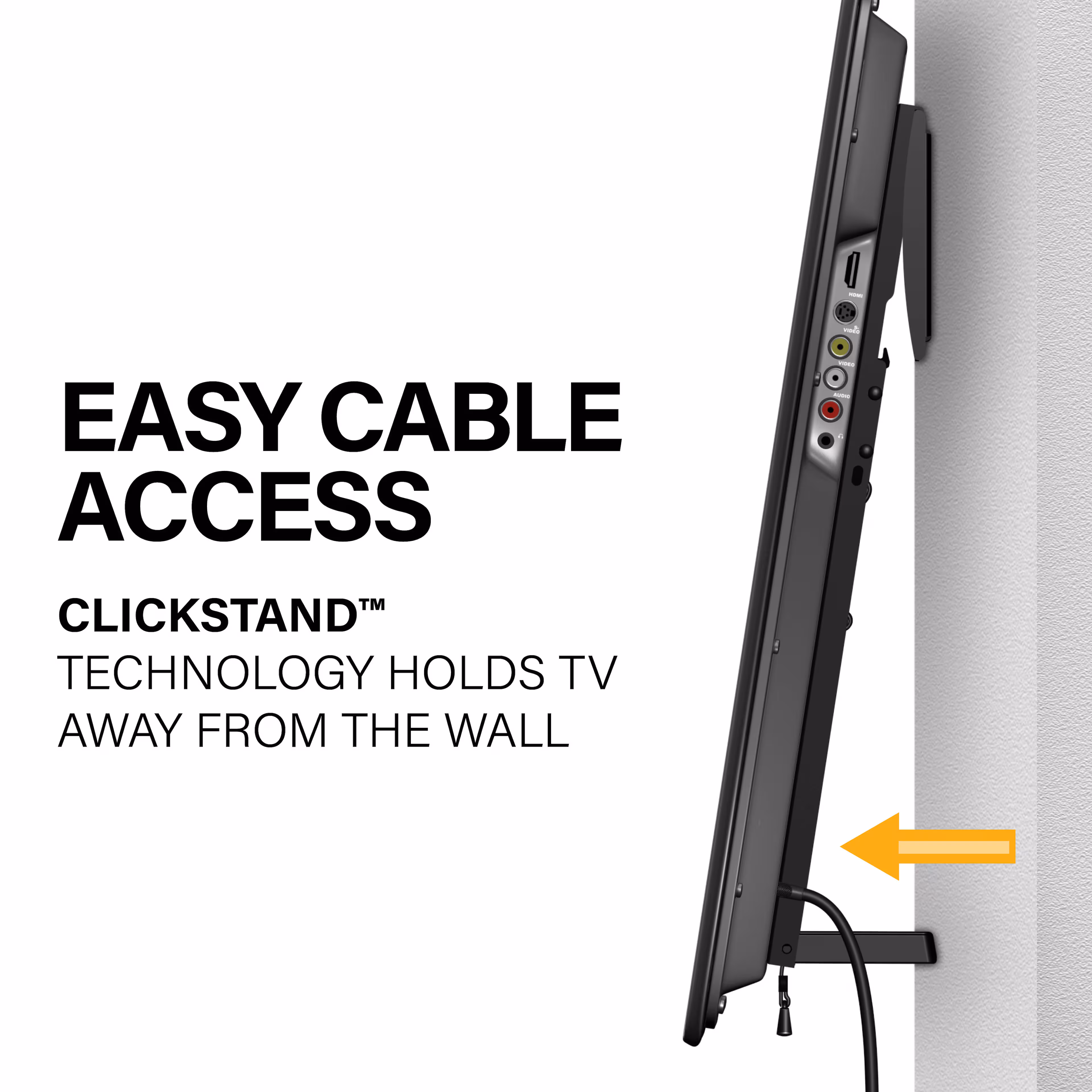 The Elite Super Slim fixed-position TV wall mount is designed to emphasize the sleek look of ultra-thin OLED and LED TVs by placing them just .67″ / 1.7 cm from the wall. The BLL2 features exclusive ClickStand technology, which holds the bottom of the TV away from the wall for easy cable access without removing the TV from the mount. Convenient quick-release tabs on the mounting brackets stay hidden, but easily pull down to unlock the TV from the wall plate for cable access. All Sanus Elite products are made to deliver unparalleled performance that will elevate your TV and audio experience.