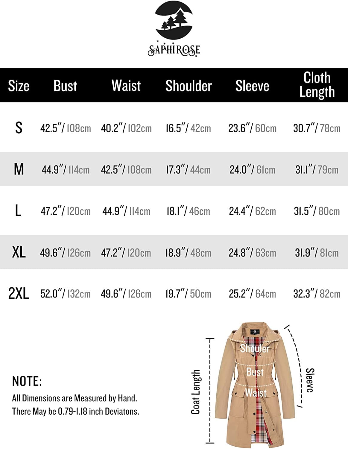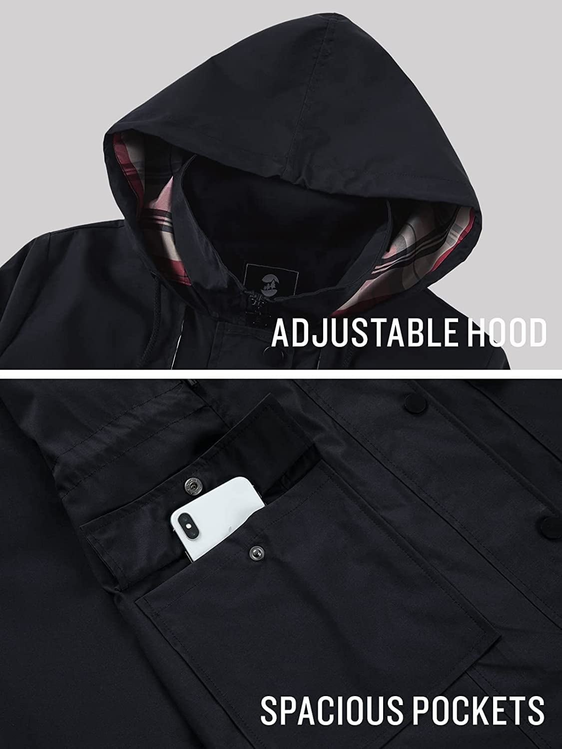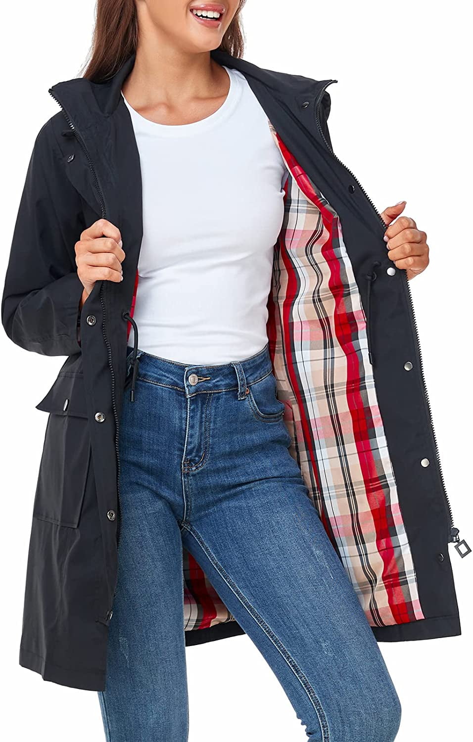 100% Polyester, Water-resistant & Breathable Size: The rain coat is casual fit and big enough, runs big for petite women, and pick one size down if you are slim. The MODEL in the picture is 5’9″ (174cm) and 114.64 lbs (52kg). Her perfect size is small. Design: Lightweight long raincoat/Chic plaid cotton lining/Adjustable drawstring waist & hood/Stylish zipper and snaps of high quality. Features: Hip-length rain jacket/Long sleeve lined windbreaker/Sturdy zipper & Storm flap with snaps/Two front flap pockets/Hooded/Dirt-proof/Wrinkle-resistant. Material: 100% polyester shell & 100% cotton lining. Water-repellent/lightweight/quick-drying/windproof/breathable/waterproof/comfortable to wear. Hand wash or machine wash by low temperature. Dry clean recommended. Occasions: This trench coat is suitable for daily wear, camping, hiking, riding, cycling, climbing, picnic, walking, traveling, walking the dog, watching ball games, and other outdoor activities and sports