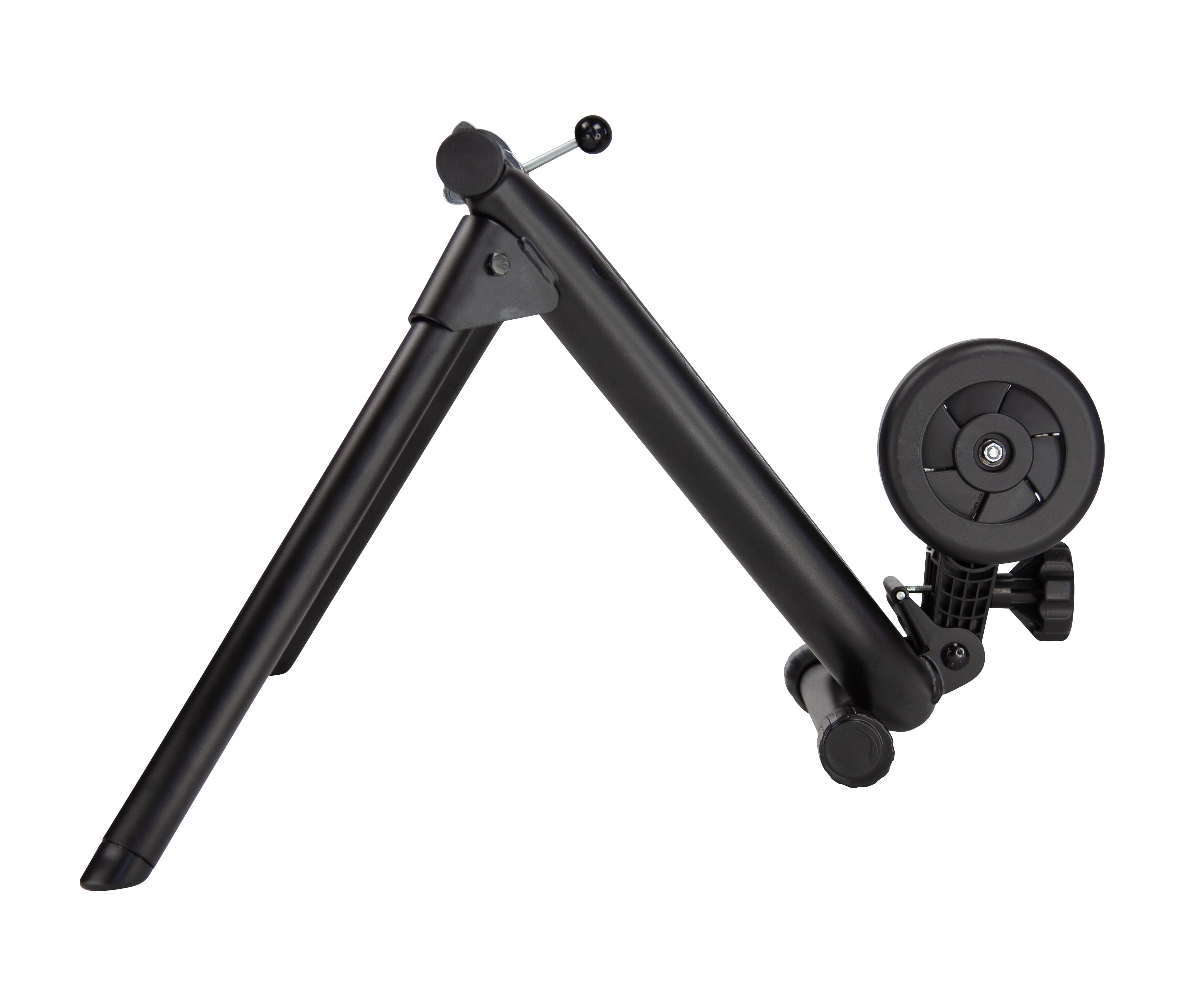 Key Features: Magnetic resistance unit from Saris (1020T) provides a quiet and frictionless ride Linear resistance boosts workout intensity to match each pedal stroke and gear click Features five adjustable levels of resistance Includes one-month subscription to virtual training app Maximum Weight (rider and bike): 300 lb. Wheel-On: Connects to rear wheel of bike, no need to remove wheel or disassemble bike Resistance Adjustment: Manual, no handlebar shifter included Trainer Frame: Foldable Classic frame with spring-loaded, bolt-action lever Resistance Knob: Standard, resistance roller-to-tire connection adjusted with turn knob