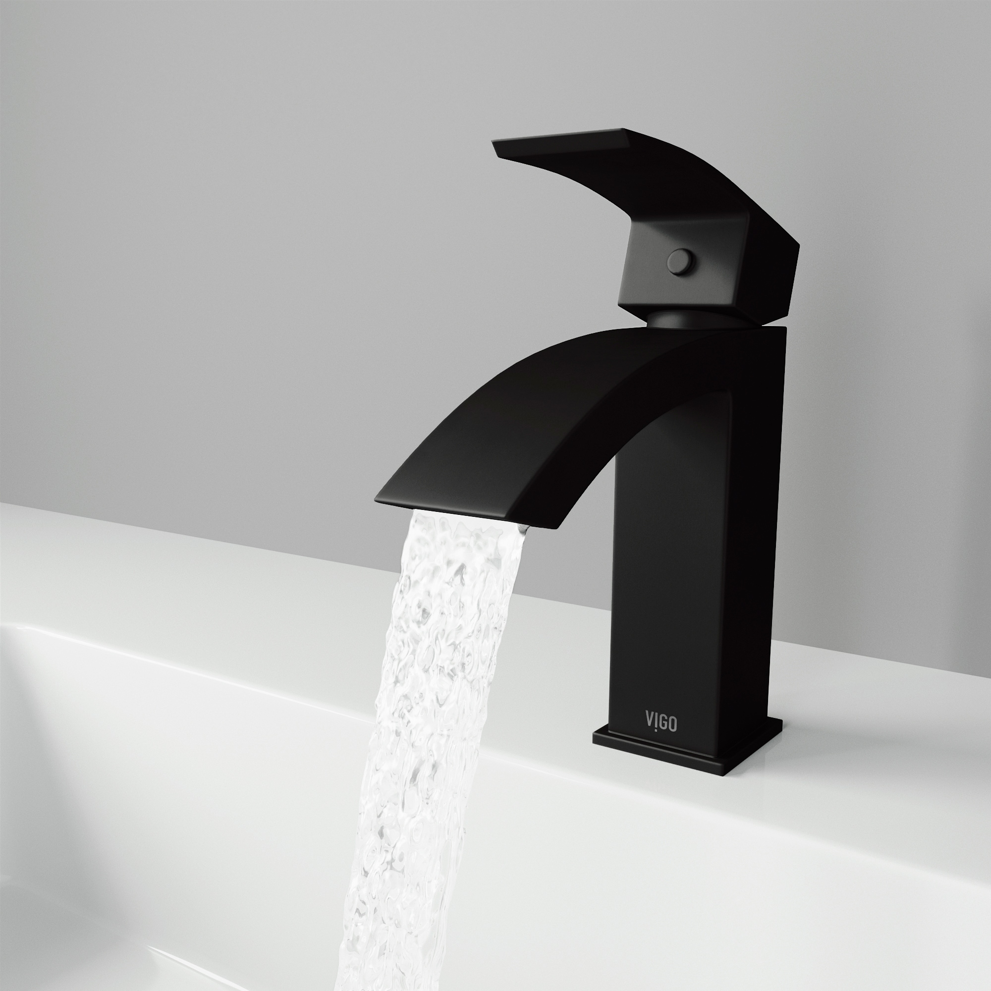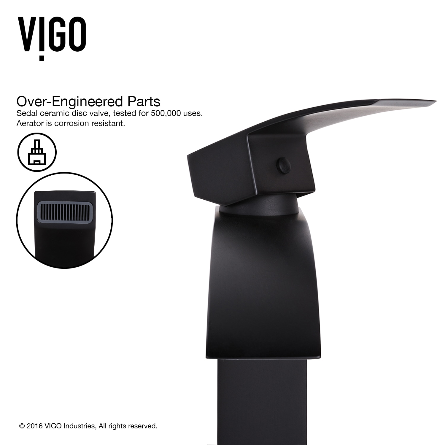 Pristine craftmanship and clean lines perfectly characterize the VIGO Satro single hole bathroom faucet in matte black. With sharp geometric inclines, this bathroom faucet is sure to make a statement in any modern, contemporary, or transitional bathroom. This bathroom faucet is plated in 7 layers of finish and built from solid brass construction to ensure durability and an anti-corrosive nature. With the water and temperature controls easily operated by a single lever, the VIGO Satro is ada compliant. It has a Sedal ceramic disc valve that has been tested for up to 500,000 uses and a corrosion-resistant aerator for easy cleaning. The single-hole installation is easily performed through standard US 3/8 In. plumbing connections. WaterSense certified by IAPMO and in line with EPA compliancy standards, this bathroom faucet has a 1.2 GPM flow rate for water conservation properties. Functional and stylish, the VIGO Satro is everything you’ve been looking for.