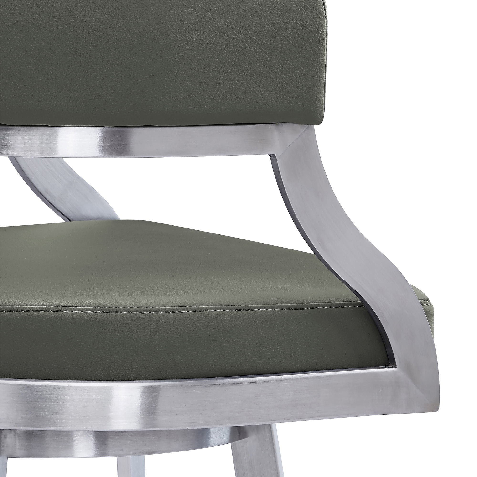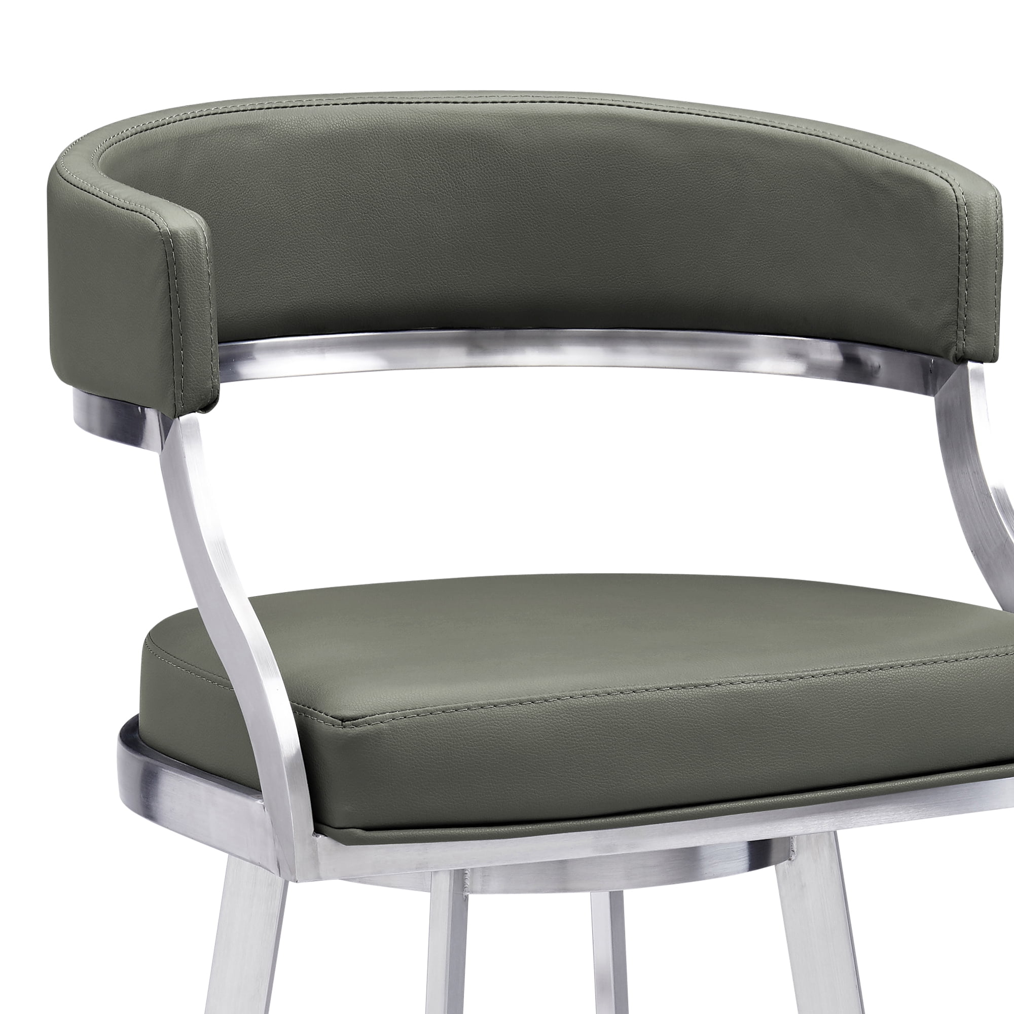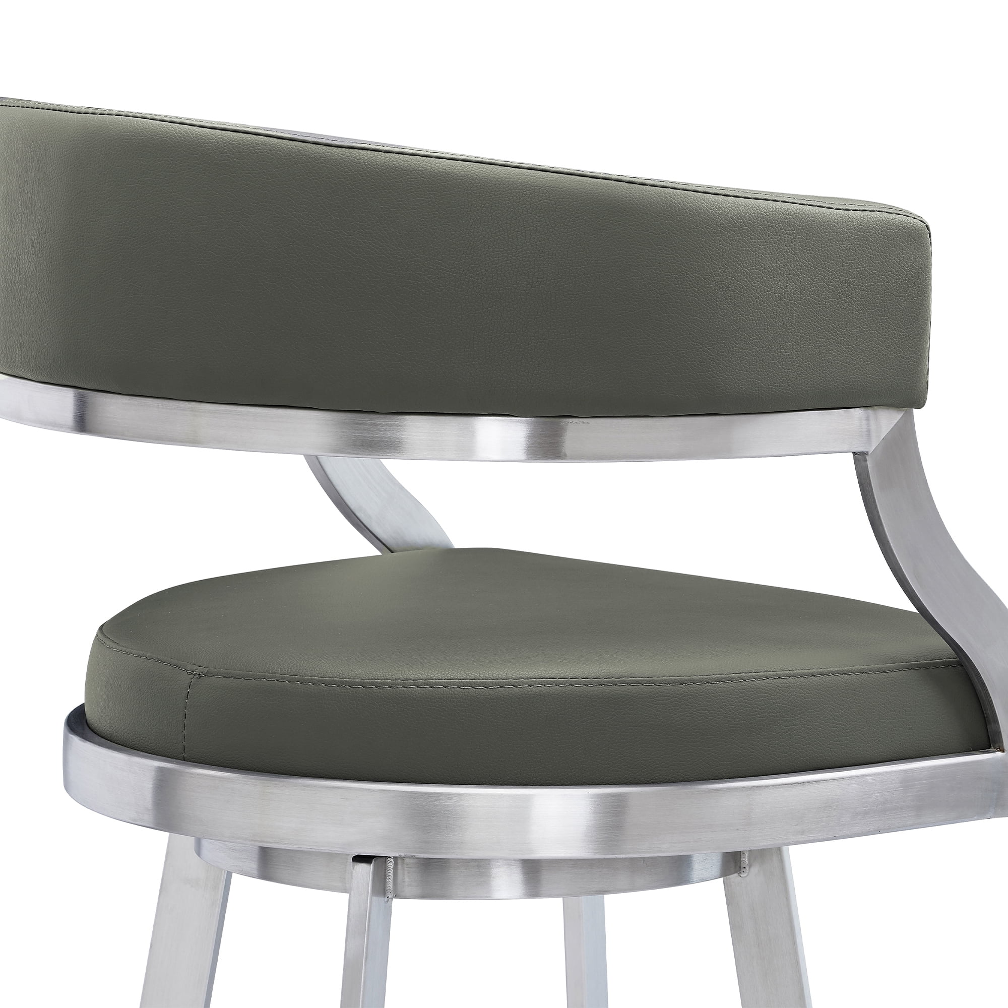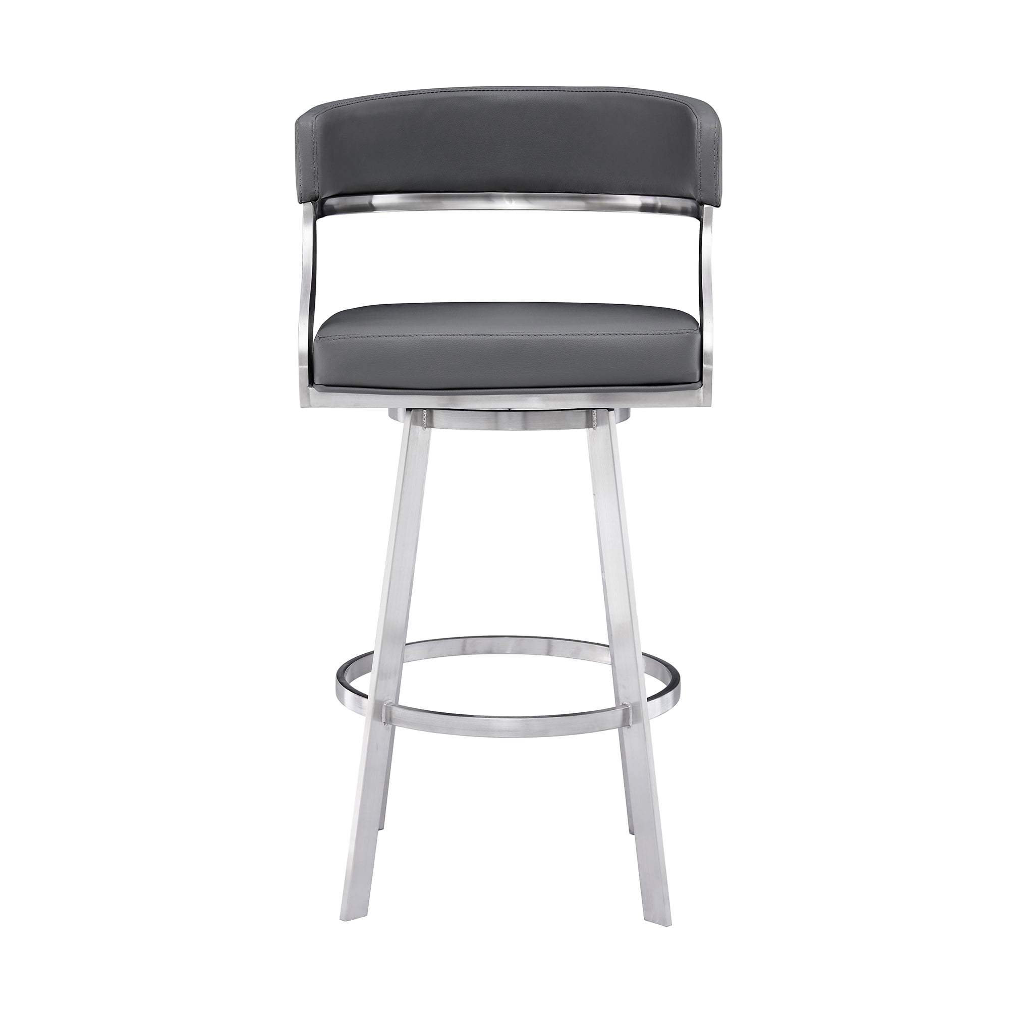 Saturn Modern 26″ Seat Height Gray Faux Leather and Brushed Stainless Steel Metal Swivel Bar Stool for Kitchen Island Counter