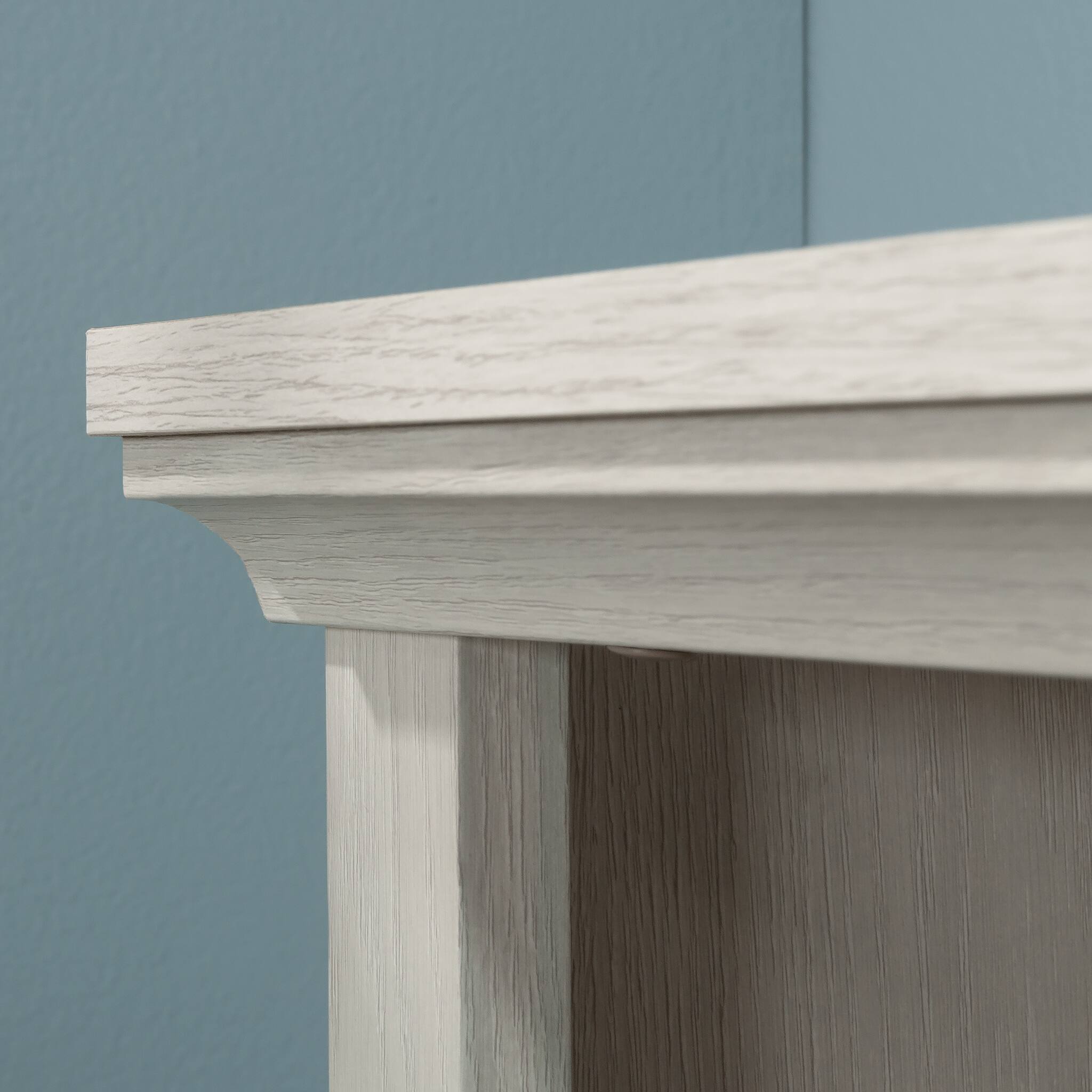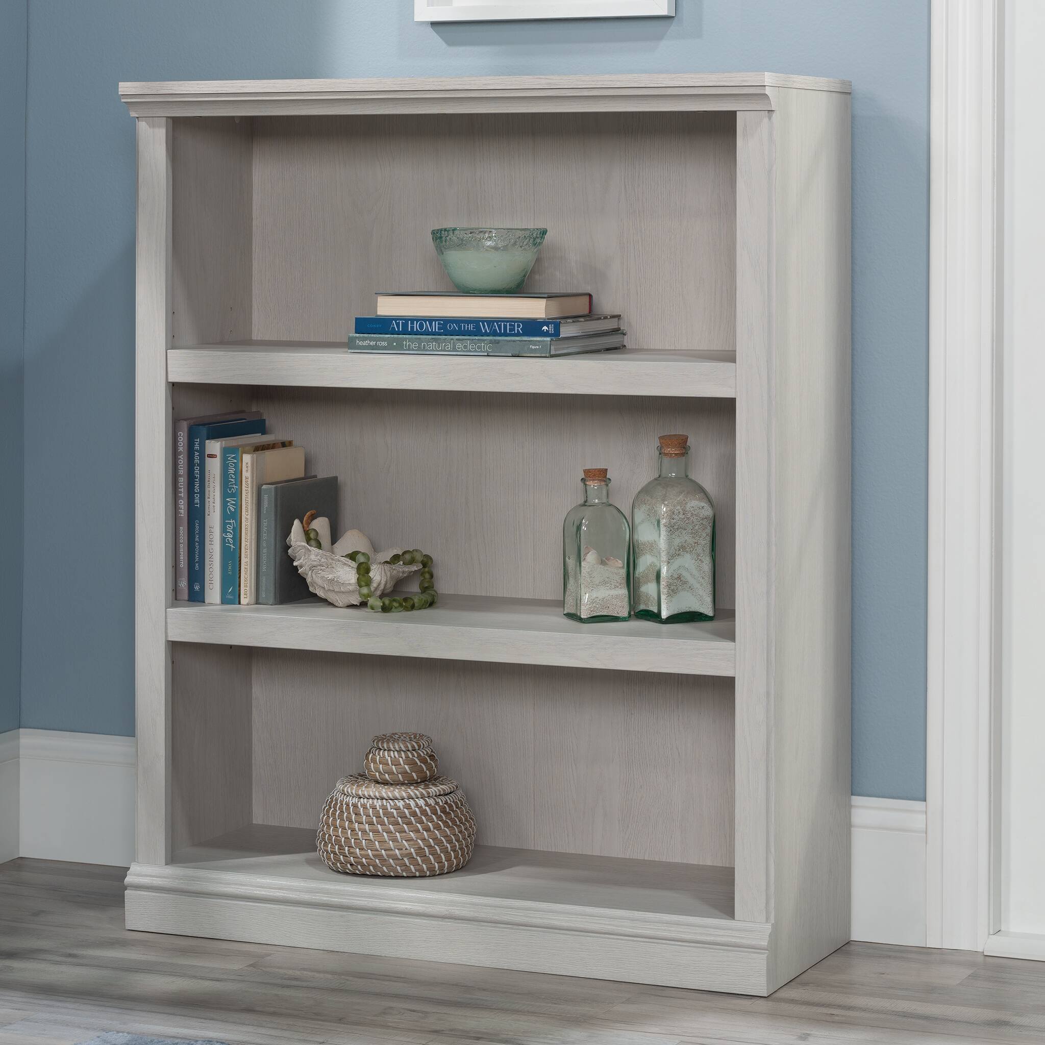 The 3-shelf bookcase from the Sauder Select collection is finished in the cool, gray tones of Glacier Oak for a neutral appearance that will easily adapt to a variety of styles and room settings. Whether your current décor is based in black, white, gray or any bright colors, this lovely display bookcase will blend effortlessly into any space. Don’t be fooled by the neutral color, the cove moldings lend a refined appearance to the classic household staple, giving this living room bookcase an elegant style, in addition to function. The two adjustable shelves of this wood bookcase provide plenty of room for storage and organization of items small and large alike. From a collection of family photo albums to a tall vase of fresh flowers or a small stack of children’s books, this bookcase is exactly what your home needs. This 3-shelf bookshelf offers a quick and easy assembly with slide-on moldings for a smooth and simple building process making it a chic and effortless addition to your home’s style and organization.