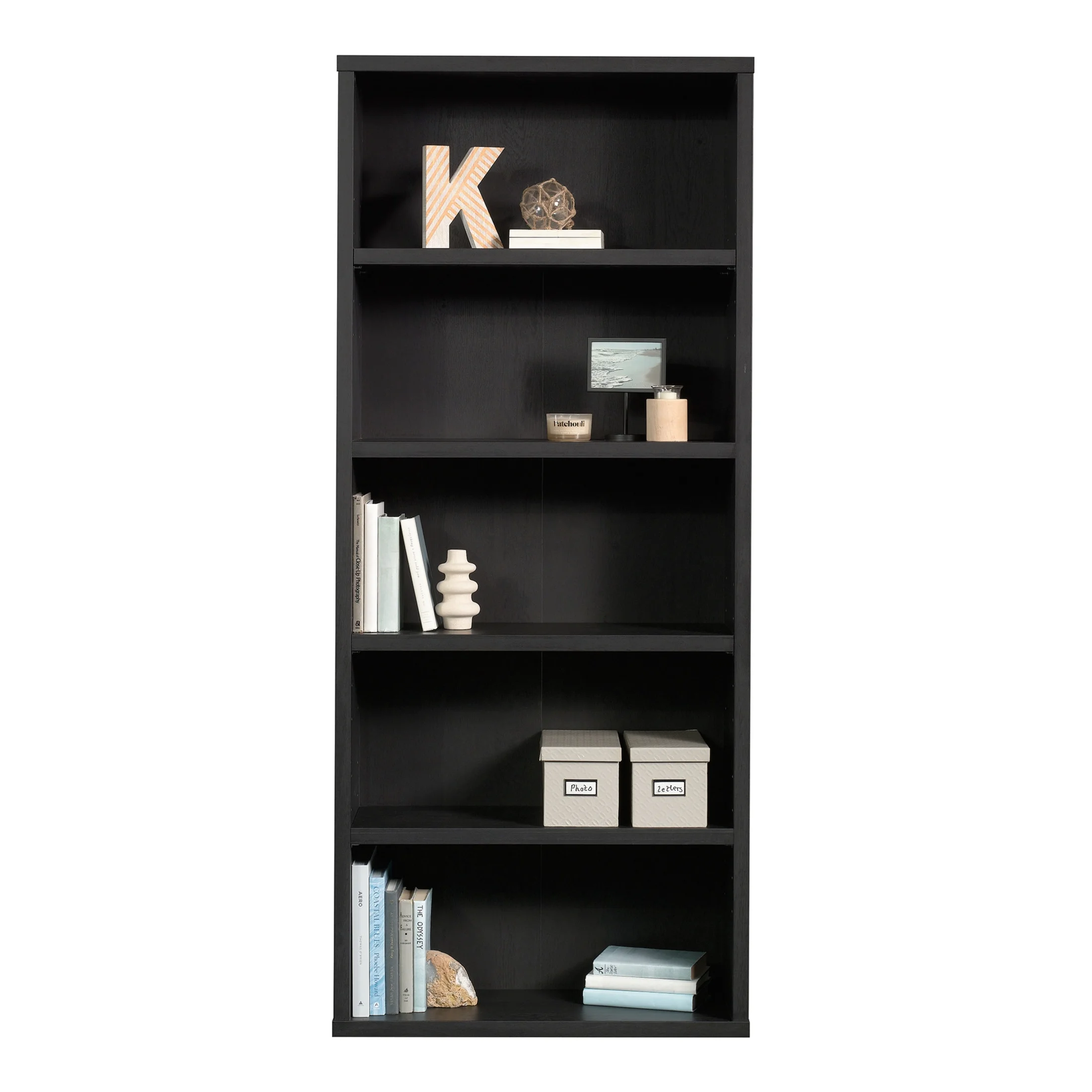 Sauder 5-Shelf Display Bookcase, Raven Oak Finish