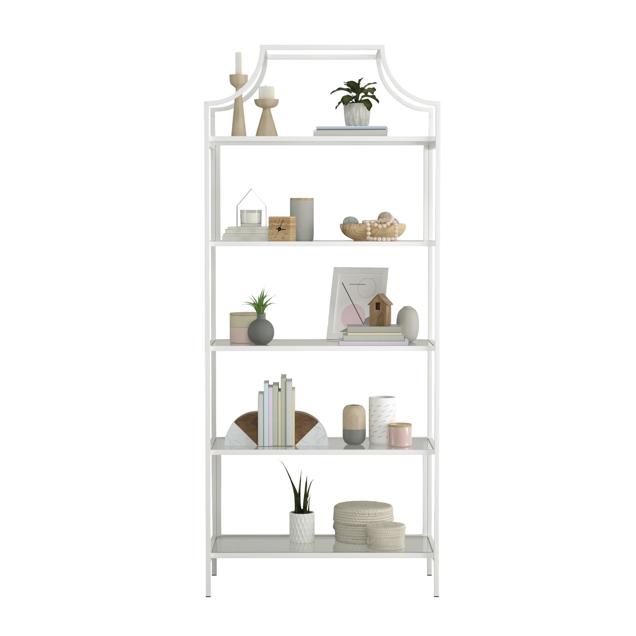 Sauder Anda Norr 5-Shelf Metal Framed Glass Bookcase, White Finish