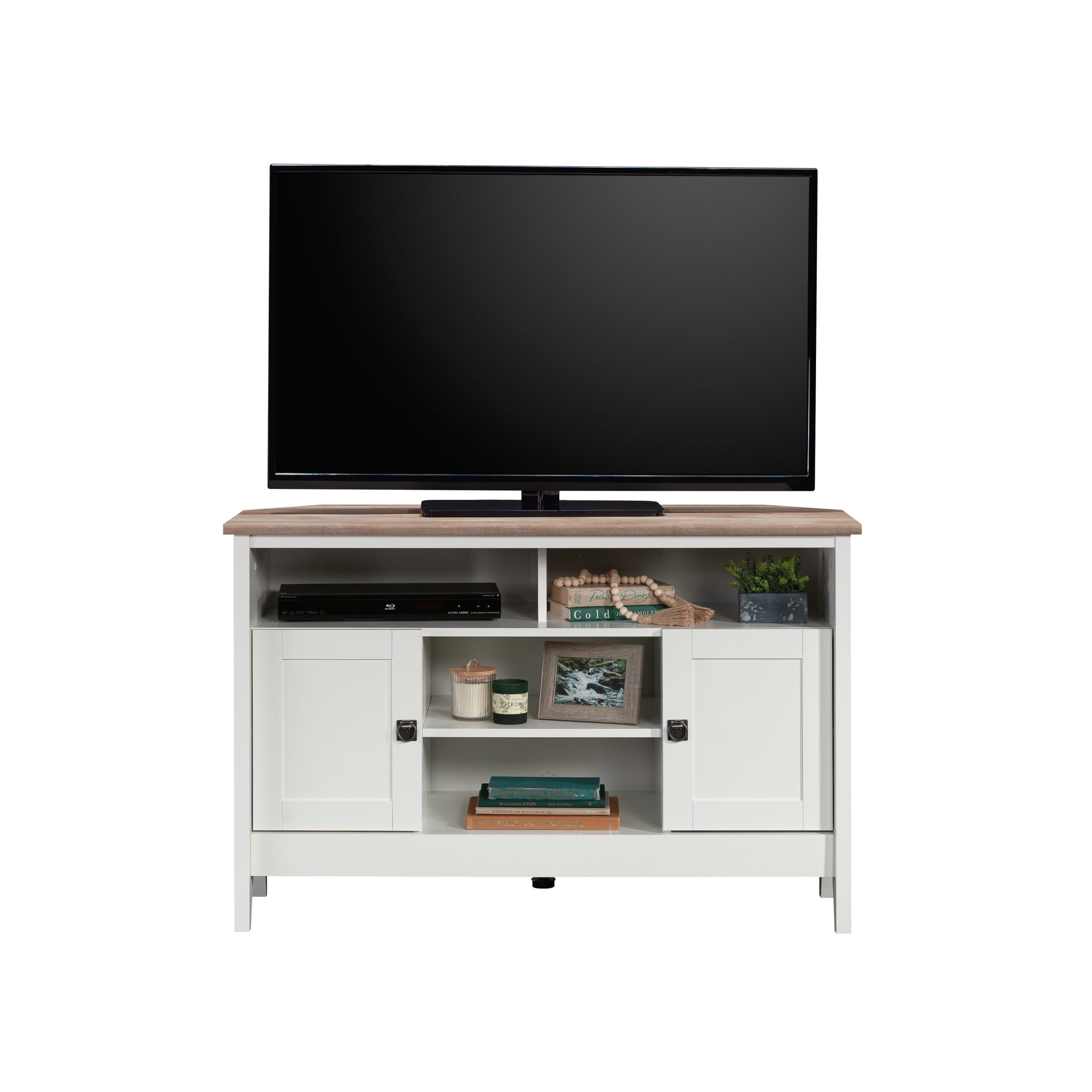 Sauder August Hill Corner TV Stand for TVs up to 50″, Soft White Finish