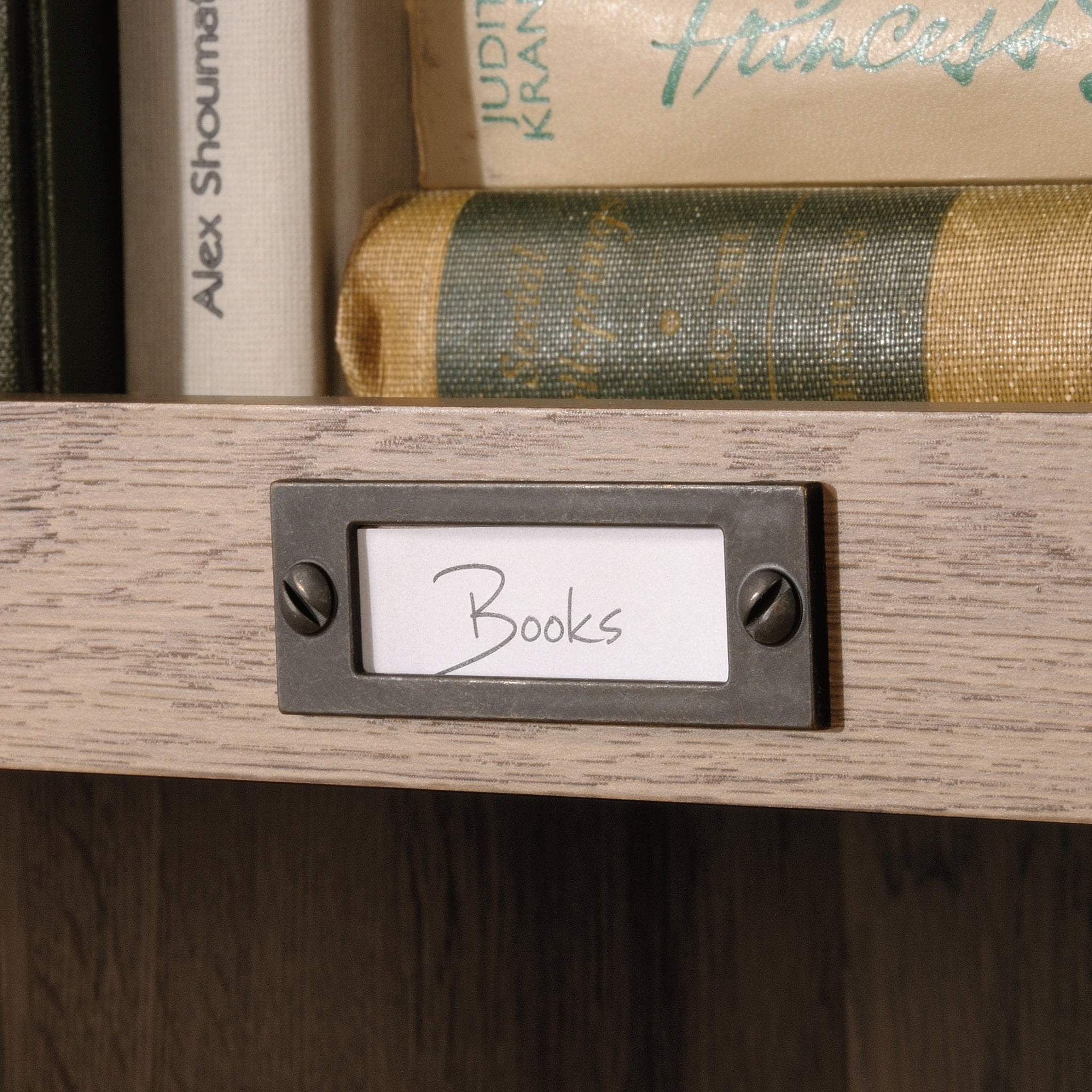 Assembled Dimensions: 35.55″ L x 13.5″ W x 75.04″ H Cubbyhole storage for books, binders, framed photos, collectibles, and more Accommodates ID label tags for personalized organization Salt Oak finish Model #: 414108 Box Dimensions: 77.63″ L x 12.25″ W x 6.06″ H For additional questions or any issues, please contact the manufacturer at 1-800-523-3987. Be sure to check out the Sauder Barrister Lane collection for more great items!
