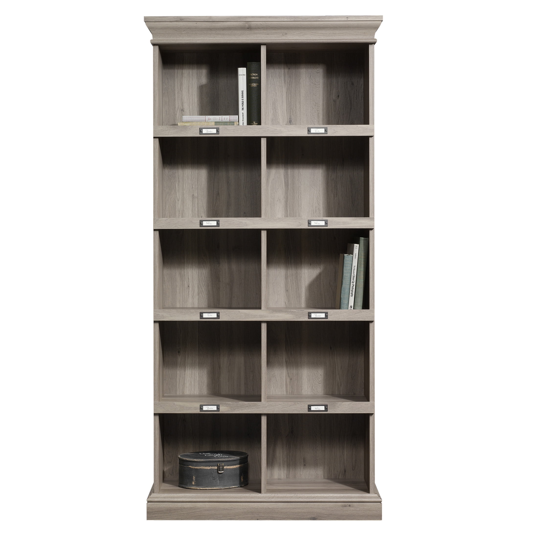 Create versatile storage options in your home without sacrificing style with this tall bookcase from the Barrister Lane collection. This handsome bookcase features ten storage cubbyholes for you to organize, store and display all your around home essentials your collection of cookbooks, decorative knick-knacks, miscellaneous office supplies and bins full of house hold items too. It has a place for all your stuff! Each cubbyhole accommodates an ID label tag so you can keep your home organized and clutter free. Easily label each cubby so you can find what you are looking for fast! Its convenient storage options and beautiful style make this bookcase a perfect fit for any room in your home in your office, the living room, down the hallway or even in the bedroom! It looks good no matter where it stands! Finished in Salt Oak, this one-of-a-kind tall bookcase is the solution to all your storage woes.