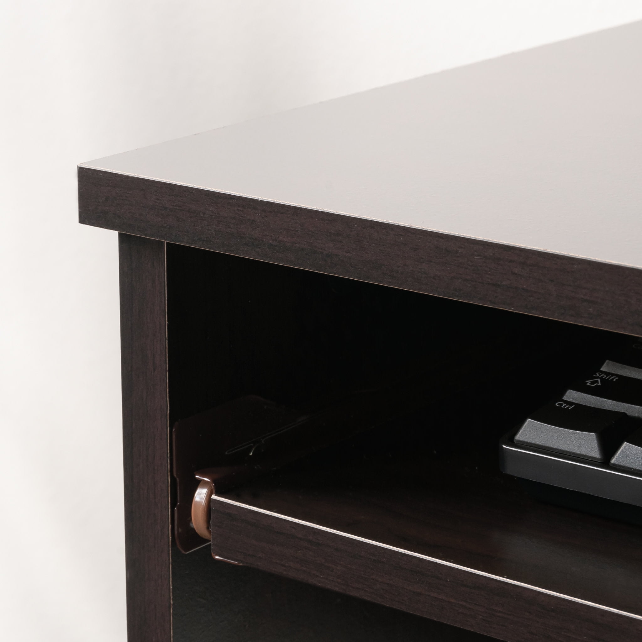 Just purchased a new desktop or laptop computer? Give it a new home with this computer desk from the Beginnings collection. An elevated monitor/printer shelf allows you to keep your office ergonomics in check and have your printed papers close by. This home office desk features a slide-out keyboard/mouse shelf to keep the top surface space clear for your notepad. With you in mind, a dedicated space for a vertical CPU tower keeps your small home office desk tidy and organized. Additional storage can be found behind the lower door, perfect for storing books, folders, and other essential office supplies. Finished in Cinnamon Cherry, this stylish desk will get you organized and help you get the job done. We hope you like what you see. Sauder designers travel the world and bring back the best and latest in style, finish, and color trends. This inspiring world travel is evident in the cutting edge and innovative furniture solutions we offer to you!
