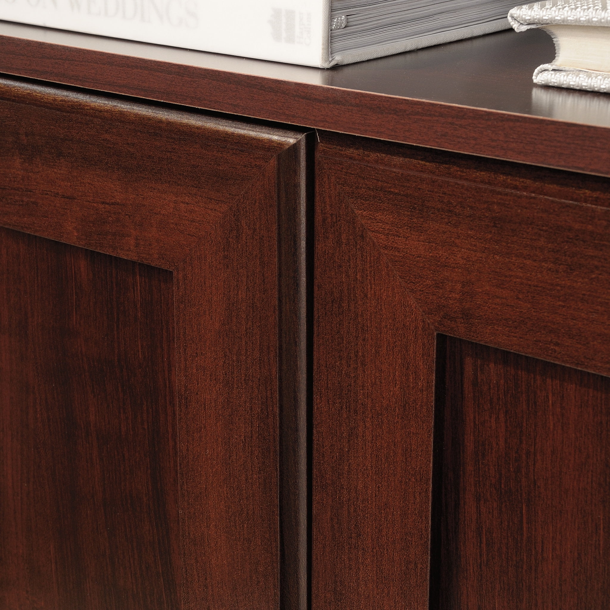 Get storage that makes a statement with this 3-shelf bookcase from the Sauder Select collection. This bookcase with doors features three large shelves with space to store and display items like your collectibles, favorite books, decorative plants, and framed photos of your family and friends. The hidden storage area behind the doors includes a spacious shelf to store items like magazines, storage bins, and items you prefer to keep hidden and out of the way. This transitional bookcase includes three adjustable shelves that can move to store items of all shapes and sizes so you never have to worry about this piece not being able to adjust to your needs and style. Its beautiful style and versatile design make this display bookshelf a great addition to any room. Finished in Select Cherry, this stunning wood bookcase with doors is sure to stand out in your home. We hope you like what you see. Our designers travel the world and bring back the best and latest in style, finish, and color trends. This inspiring world travel is evident in the cutting edge and innovative furniture solutions we offer to you! Other affordable furnishings from the collection (sold separately) are available to complete the look. For assistance after the purchase, you can to reach out to our award-winning and friendly Midwest based customer service. They are ready to help you every step of the way with any questions you might have about the product. Please contact us at 1-800-523-3987.