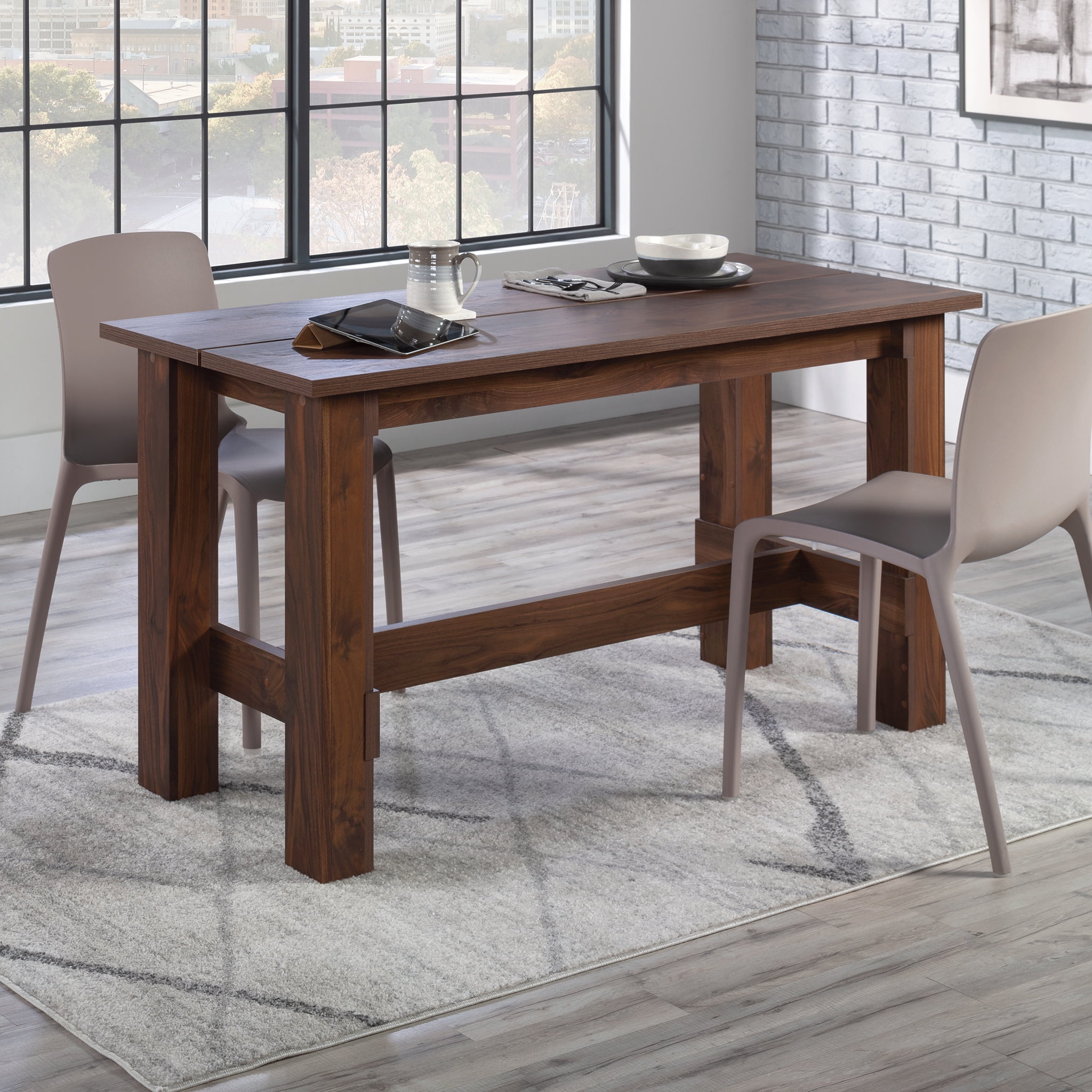 It’s time to update the look of your kitchen or dining room! Refresh your space with this dining room table from the Boone Mountain collection. Kitchen dinette tables should be built with functionality and versatility in mind. That’s why this table features a 1″ thick split top with room for all your dining room essentials like dinnerware, wine glasses, and a vase of flowers. Kitchen dining tables with a spacious top surface also provide a space for family meals, game nights with the kids, or beverages with your friends. The top, split down the middle, allows a convenient path for cords on a laptop or fondue pot. This table comfortably accommodates up to four people, making it the ideal spot to entertain family and friends. Bring stylish counter space wherever you need it—in the dining room, game room, or breakfast nook. Finished in Grand Walnut, this dinette table is the affordable solution to your dining problems.