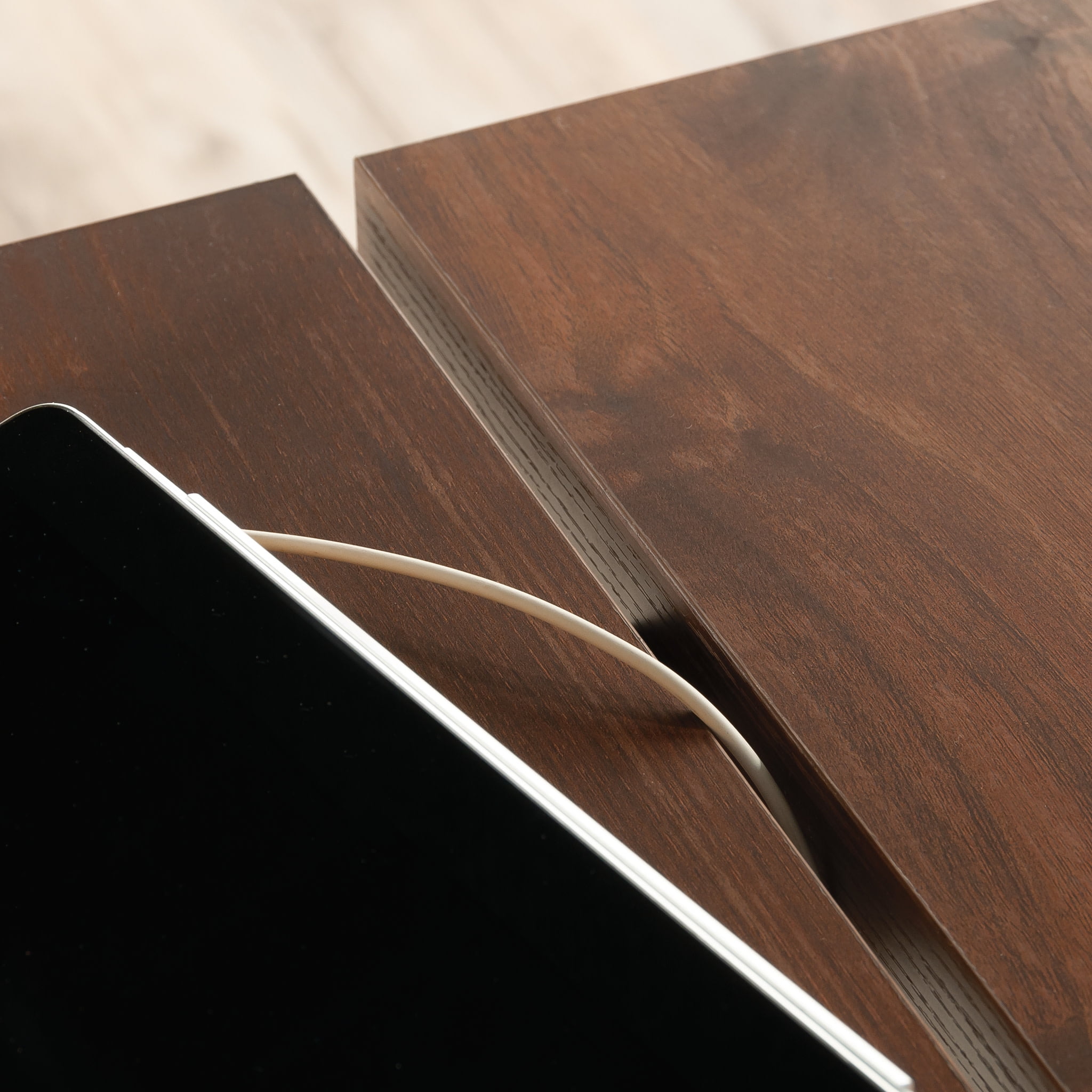 Assembled Dimensions: 55.12″ L x 25.59″ W x 30.12″ H 1″ thick split top provides durability Split top allows convenient cord pass-through Accommodates four people Grand Walnut finish Model #: 432077 Box Dimensions: 59.94″ L x 13.25″ W x 5.81″ H For additional questions or any issues, please contact the manufacturer at 1-800-523-3987. Be sure to check out the Sauder Boone Mountain collection for more great items!