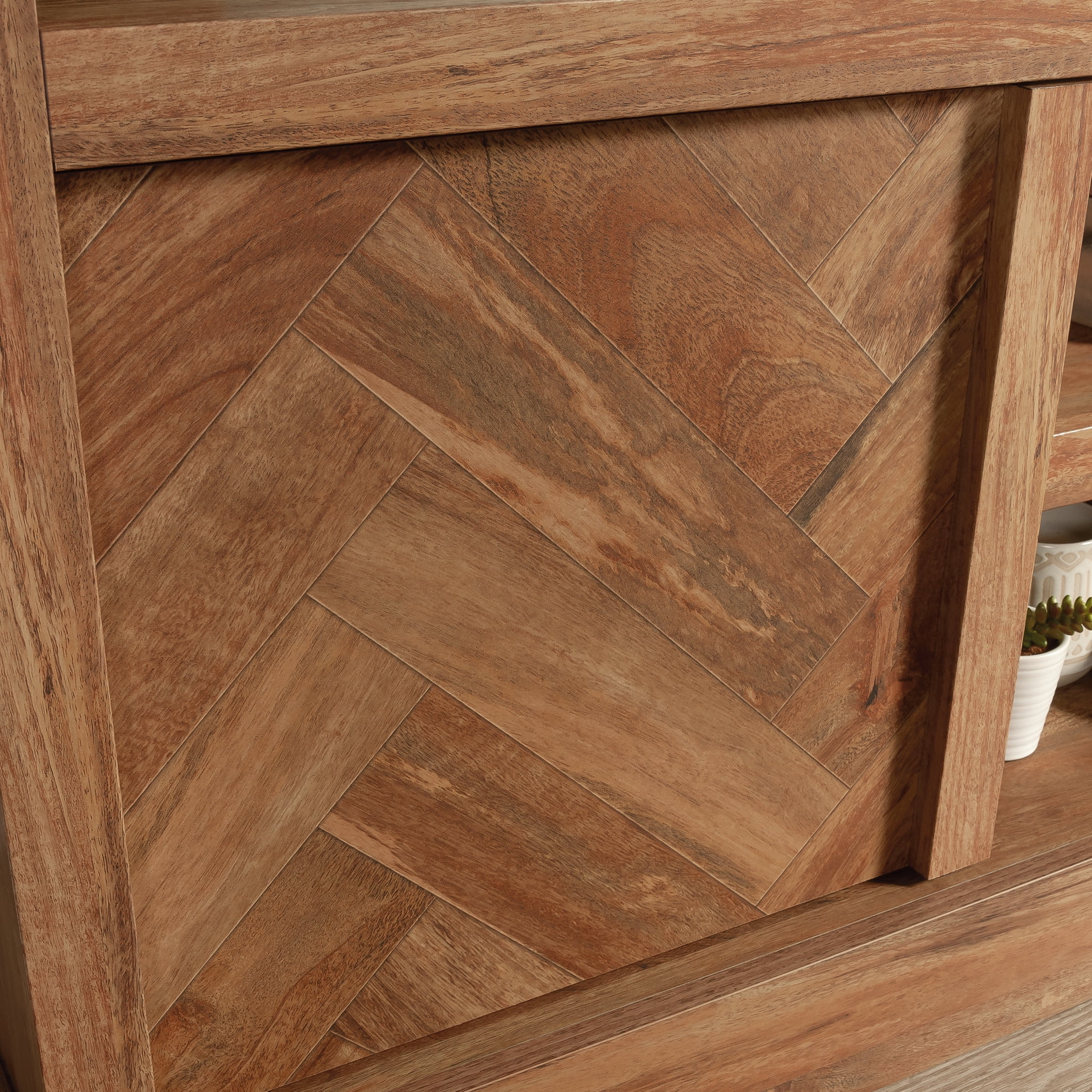 Sauder Cannery Bridge Farmhouse TV Credenza for TV’s up to 65″, Sindoori Mango Finish