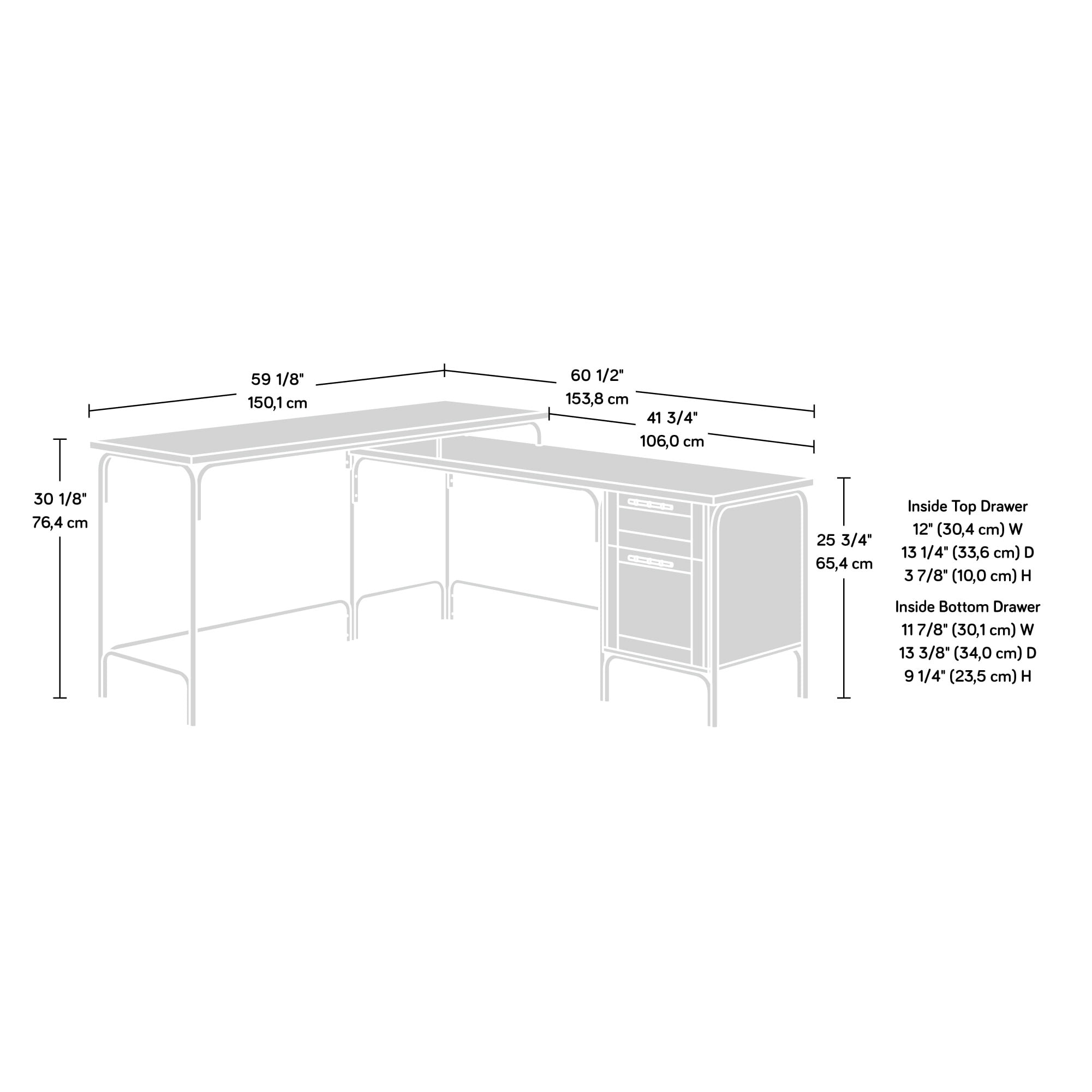 Assembled Dimensions: 60.55″ L x 59.09″ W x 30.08″ H Spacious work surface for laptop, notepads, lamp, etc File drawer with full extension slides holds letter-size hanging files to help keep you organized Storage drawer features metal runners and safety stops to keep you and your family safe Finished on all sides for versatile placement anywhere in your home Powder coated metal frame features satin gold finish Sindoori Mango finish Model #: 423742 Box Dimensions: 65.13″ L x 23.83″ W x 7.25″ H For additional questions or any issues, please contact the manufacturer at 1-800-523-3987. Be sure to check out the Sauder Coral Cape collection for more great items!