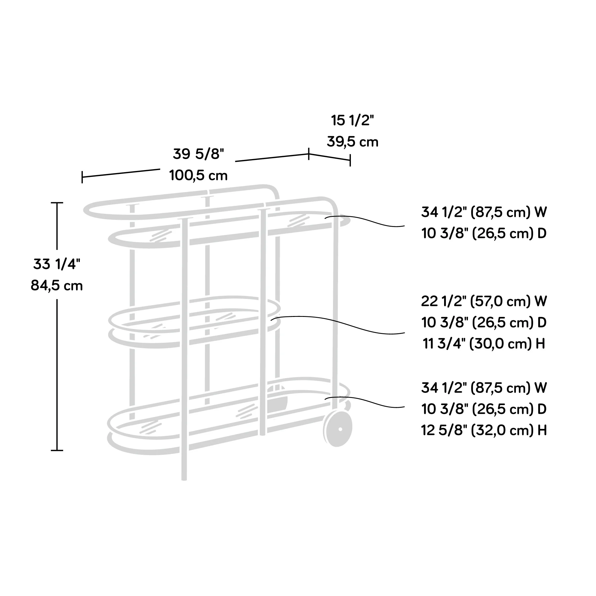 Who doesn’t love the perfect bar cart? We sure do! Create a one-of-a-kind aesthetic in your home with the unique design and charming good looks of this bar cart from the Coral Cape collection. This metal bar cart features three safety-tempered glass shelves. The spacious top shelf provides you with the room you need for various items like glass bottles, stacks of napkins, a bowl of limes, and a yummy cheese tray. The middle shelf provides you with the perfect amount of additional space for items like straws and glasses. Don’t worry, there’s still more storage. The large lower shelf provides you with even more space for other miscellaneous items. For an added touch of style, this gold bar cart features a banana leaf abstract pattern on the middle shelf and a teal tinted silk-screened glass on the lower shelf. This modern bar cart is constructed from a powder coated metal frame for added style and durability. Other features include front casters for easy mobility throughout your home. Finished on all sides in Satin Gold, this stunning bar cart is just what you’ve been missing for your next party. Features: Finish: Satin Gold Material: Metal and Glass Three safety-tempered glass shelves. Middle shelf features banana leaf abstract pattern for added visual interest. Lower shelf features teal tinted silk-screened glass. Powder coated metal frame. Finished on all sides for versatile placement anywhere in your home. Front casters for easy mobility. Specifications: Product Weight: 32.56 lbs Assembly Required: Yes Product Dimensions: 33.27″ H x 39.57″ W x 15.55″ D Weight Capacity: 35 lbs