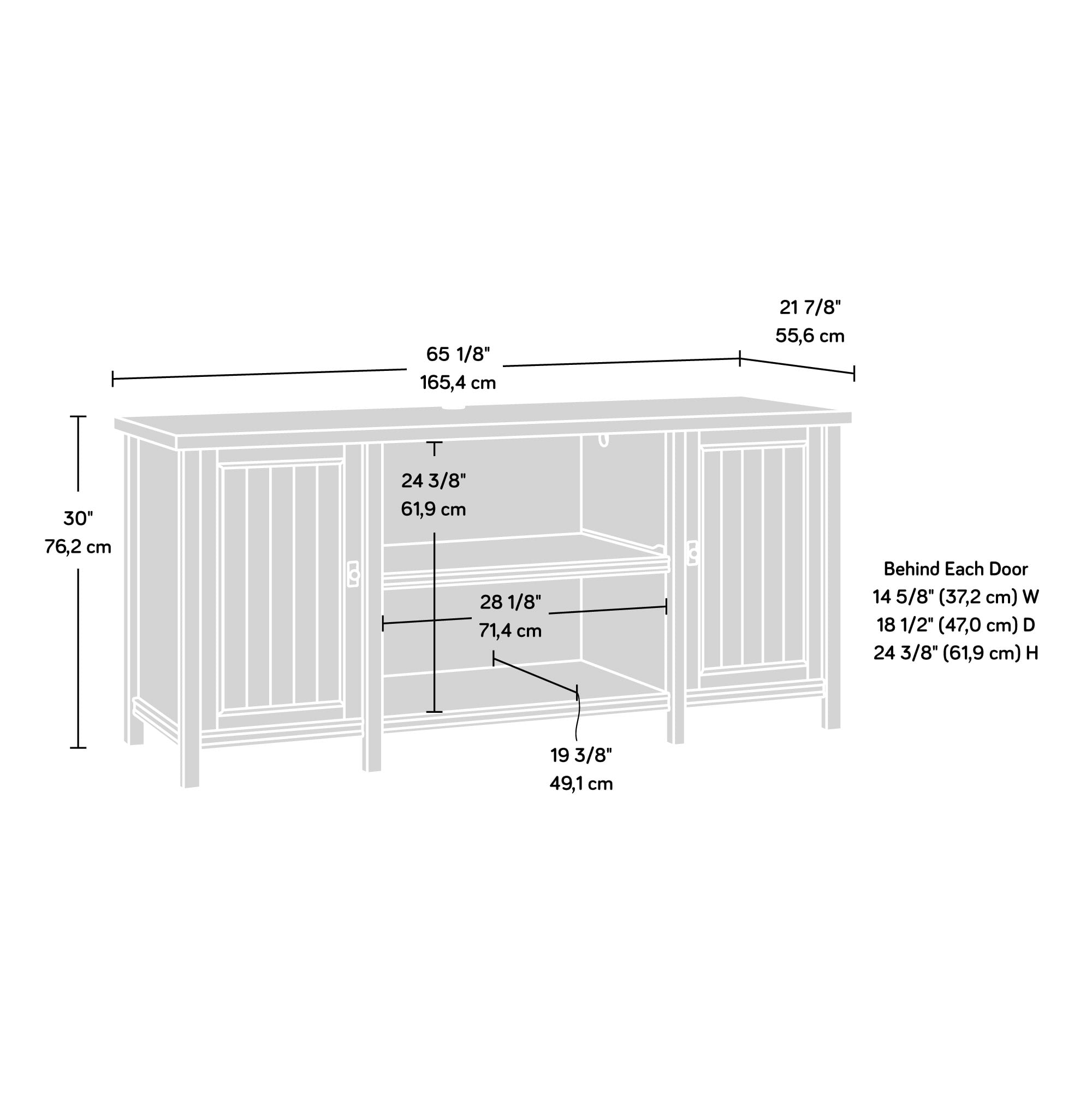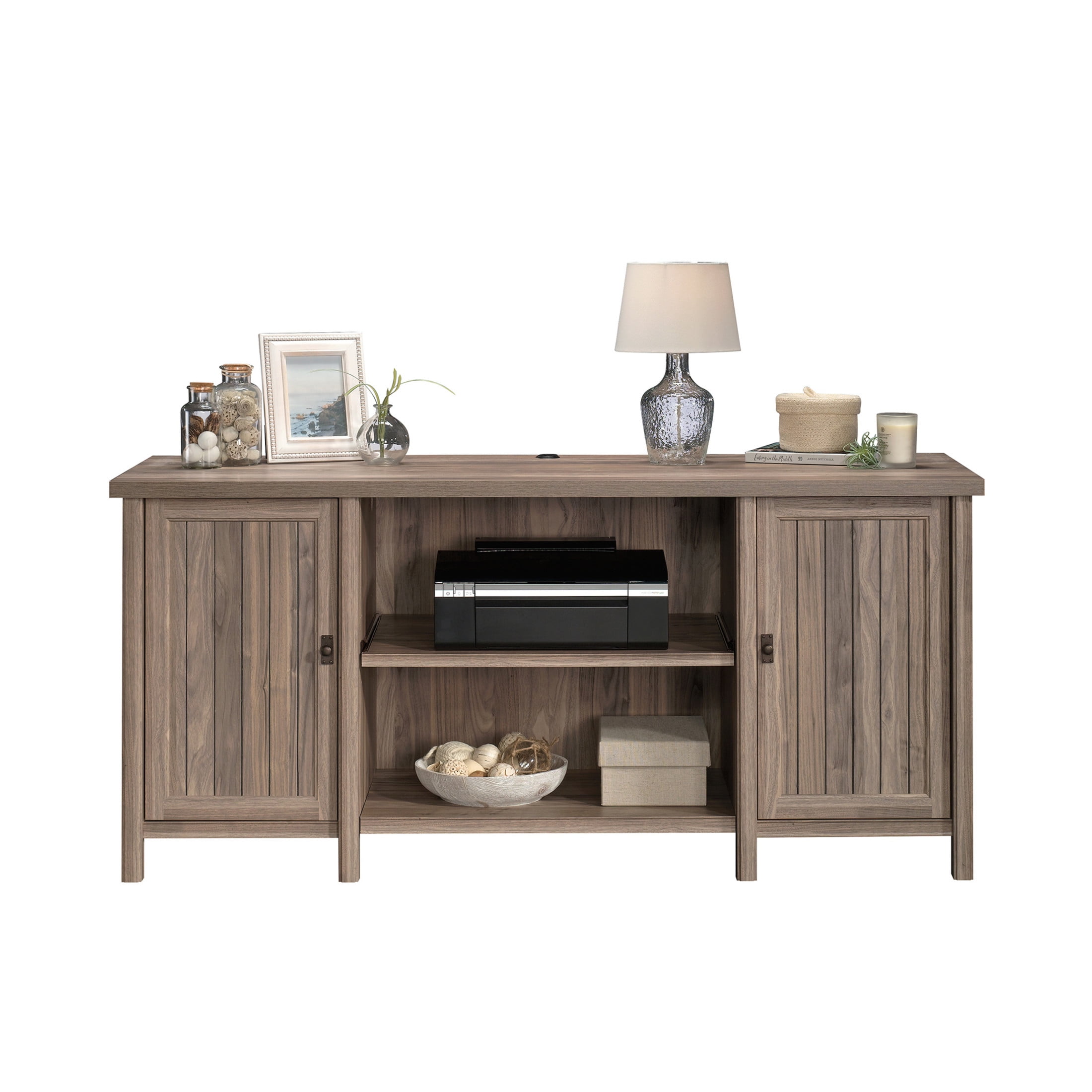 Assembled Dimensions: 65.12″ L x 21.89″ W x 30.00″ H Durable, 1″ thick top to display lamps, books and more Adjustable shelf behind each door to accommodate items of various heights Pull-out, adjustable printer shelf on metal runners for easy access Frame and panel doors feature elegant slat-front detailing Cord management system includes desktop grommet hole Washed Walnut finish Model #: 428193 Box Dimensions: 75.33″ L x 26.25″ W x 4.13″ H For additional questions or any issues, please contact the manufacturer at 1-800-523-3987. Be sure to check out the Sauder Costa collection for more great items!