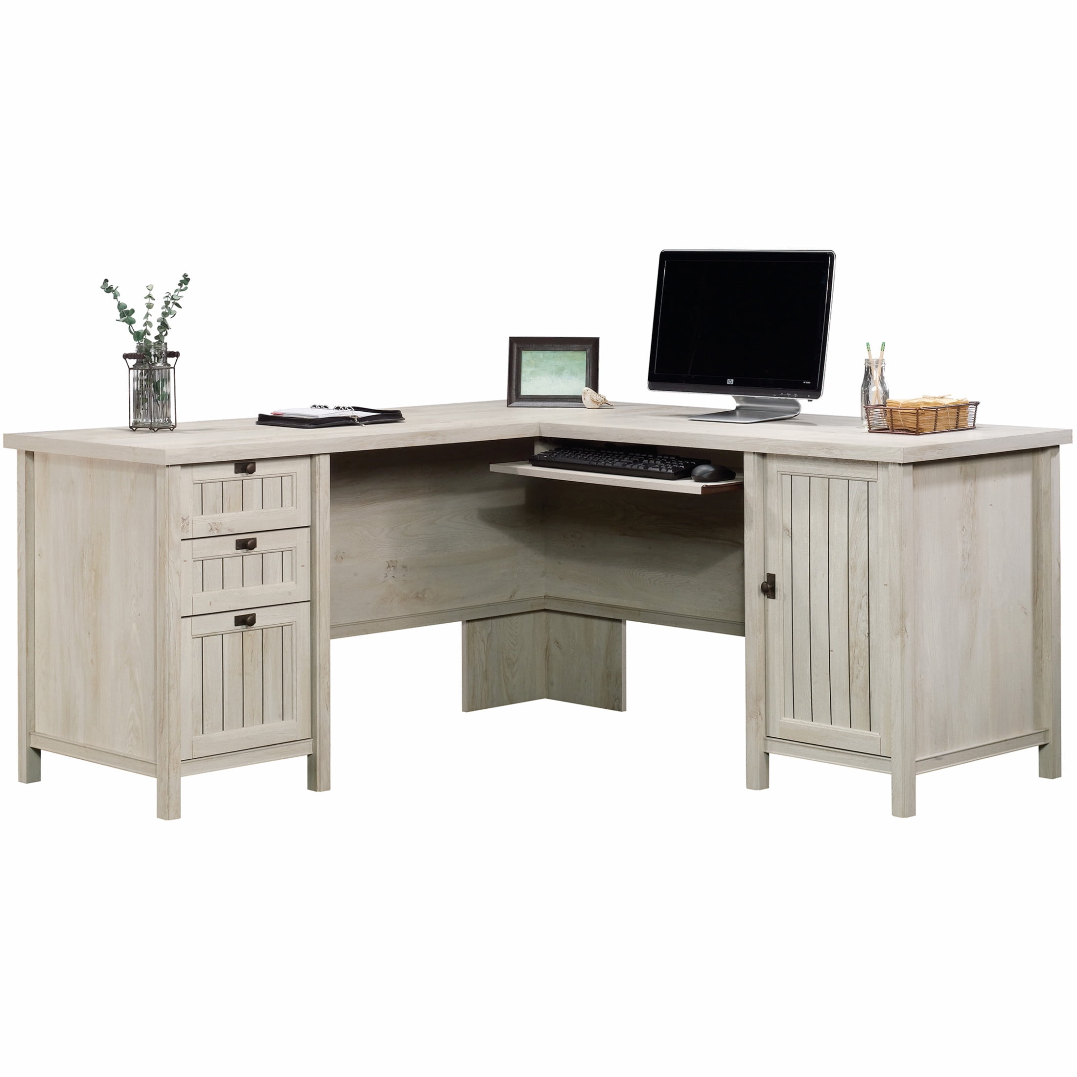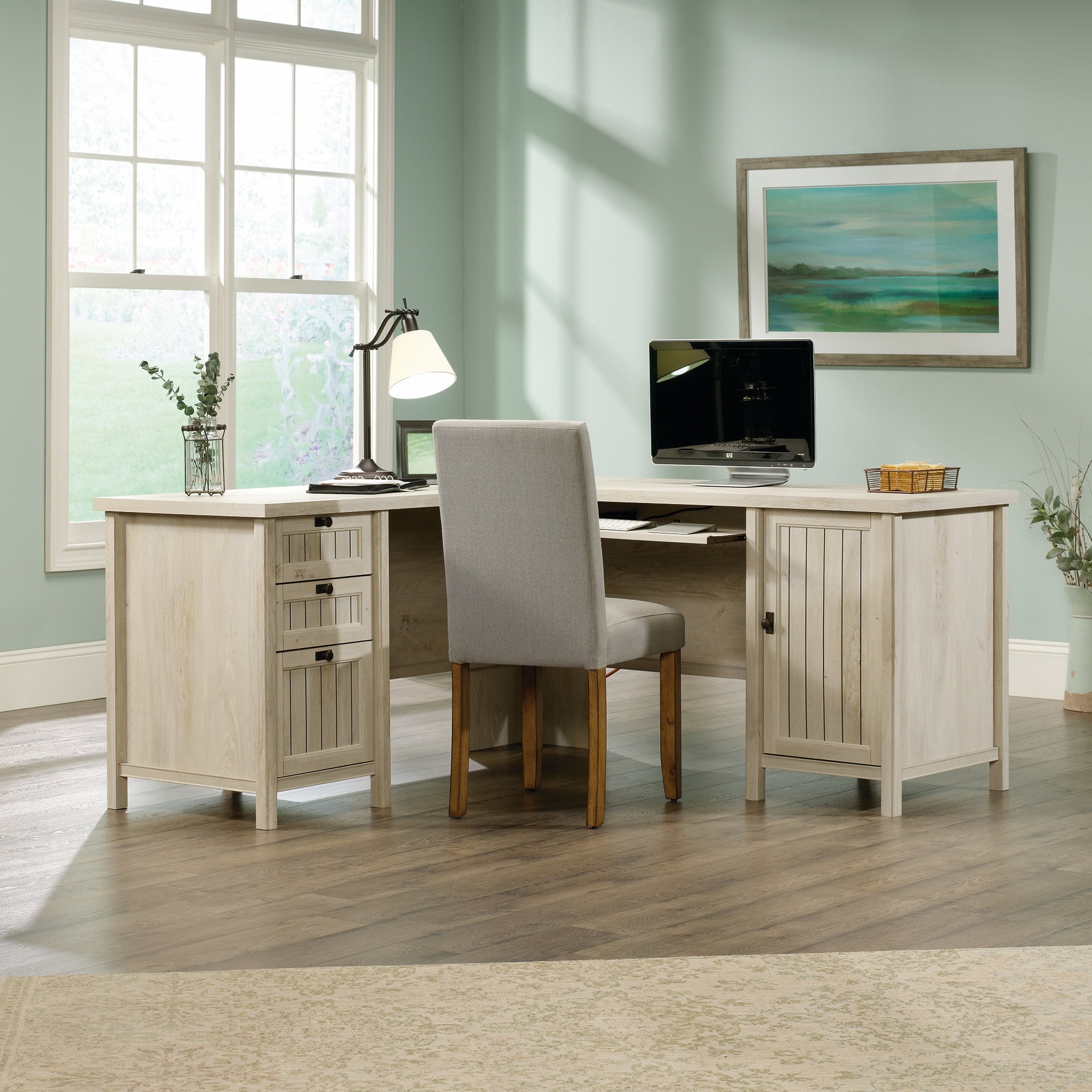 Sauder Costa L-Shaped Computer Desk, Chalked Chestnut Finish