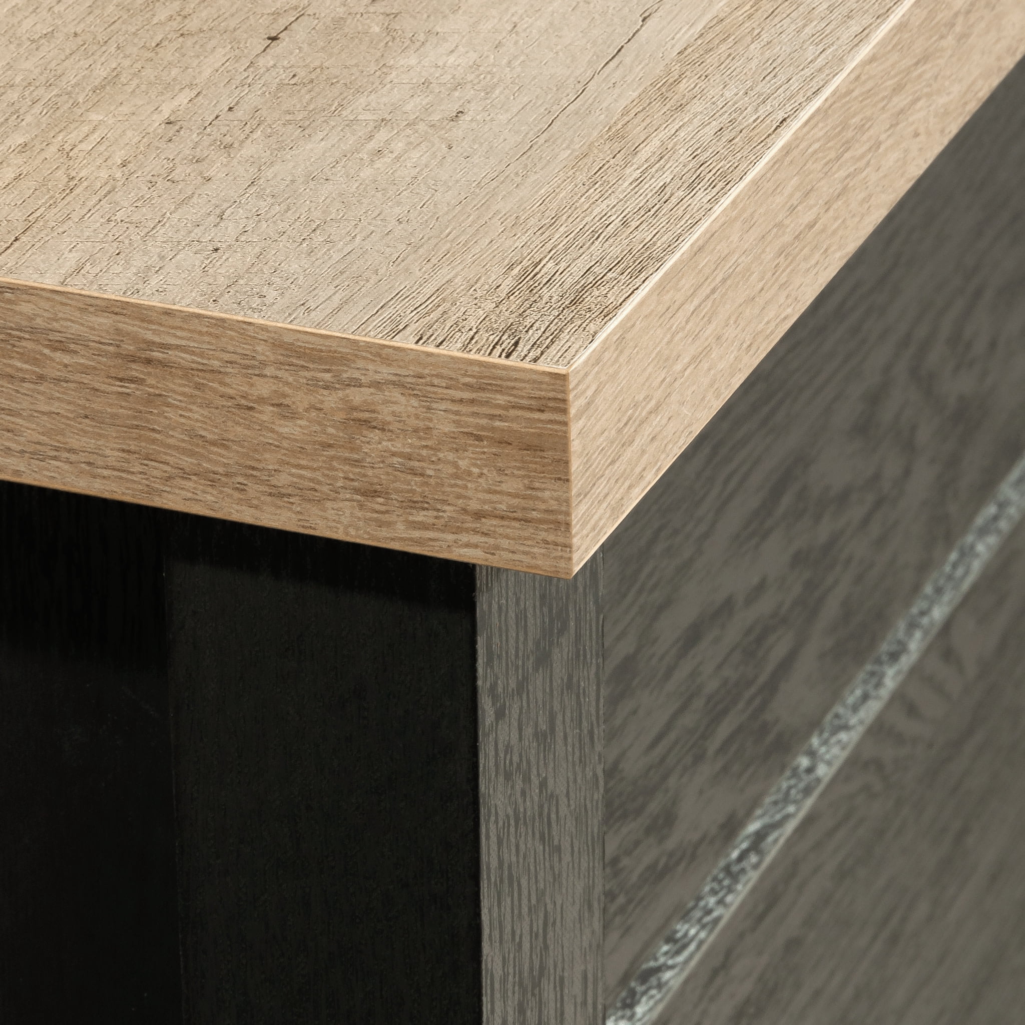 Assembled Dimensions: 56.73″ L x 17.64″ W x 35.35″ H Add extra storage to your bedroom with this beautiful Dresser Drawers feature metal runners and safety stops to keep you and your family safe Six spacious drawers offer plenty of storage for shirts, sweaters, and jeans Interlocking safety mechanism allows only one drawer open at a time on each side Quick and easy assembly with T-lock drawer system – because we know your time is valuable This dresser complies with ASTM F2057-23 Standard Safety Specifications for Clothing Storage Units as required by the STURDY Act Raven Oak finish with Lintel Oak accent Model #: 432863 Box Dimensions: 62.31″ L x 20.38″ W x 11.88″ H For additional questions or any issues, please contact the manufacturer at 1-800-523-3987. Be sure to check out the Sauder Cottage Road collection for more great items!